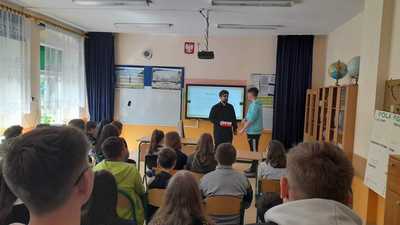 Przed świętami majowymi w czwartek odbyło się w naszej szkole dla klas IV-VIII spotkanie z historykiem Szymonem Koniecznym.