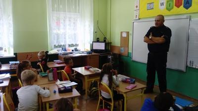 Gościem klasy I był policjant z lwóweckiego Posterunku Policji asp. szt. Paweł Kortus. Tematem spotkania było przede wszystkim bezpieczeństwo. Policjant rozmawiał z dziećmi o bezpiecznym poruszniu się po ulicach a w szczególności omówił zasady bezpiecznej drogi do i ze szkoły...