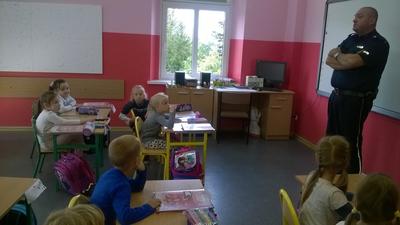 W ramach edukacji -BEZPIECZEŃSWO DZIECI uczniowie klasy I uczestniczyli w spotkaniu z policjantem. Dzieci miały okazję porozmawiać z policjantem o zachowaniu bezpieczeństwa w drodze do szkoły i poza szkołą. Policjant omówił zasady poruszania się po ulicy, chodniku i podczas jazdy rowerem....