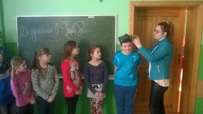 Uczniowie z klasy IV i III podczas lekcji historii gościli mamę uczennic z wcześniej wspomnianych klas. Zaproszony gość przyniósł ze sobą czapkę powstańca ze Lwówka. Było to niezwykłe wydarzenie, gdyż jest to jedyny taki element umundurowania na naszym terenie. Dzieci z zainteresowaniem...