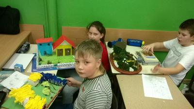 Uczniowie klasy IV na zajęciach plastyki zaczęli tworzyć pracę przestrzenną pt. "Zagroda Jeźdźców", która tematycznie związana jest z omawianą obecnie książką pt. "Bracia Lwie Serce". W związku z tym, że zadanie wymagało sporo czasu, zostało ono ukończone przez uczniów...