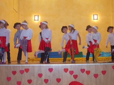 Oprócz montażu słowno - muzycznego, zaproszeni goście obejrzeli także pokazy taneczne oraz grę na flażoletach  w wykonaniu swoich wnucząt. "Mali artyści" z przejęciem odtwarzali role, a goście ze wzruszeniem odbierali ciepłe słowa, kierowane pod ich adresem. Miłą niespodzianką była przygotowana przez organizatorki spotkania prezentacja multimedialna, która zawierała zdjęcia wnuków ze swoimi dziadkami. Frekwencja, jak co roku dopisała, co nas oczywiście bardzo cieszy i motywuje do podobnych działań. Uroczystość umilił tradycyjny  poczęstunek w postaci ciasta, kawy, herbaty oraz owoców. Następnie  wnuki obdarowały swoich ukochanych gości własnoręcznie przygotowanymi upominkami. Były to piękne laurki z życzeniami oraz prześliczne kwiatki.