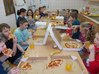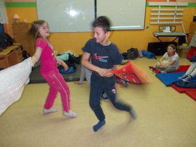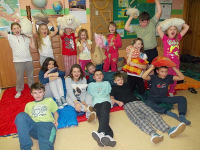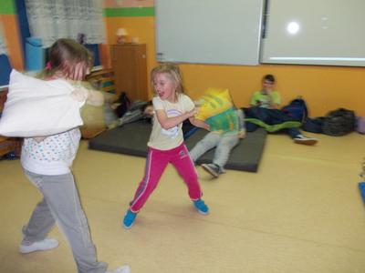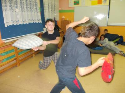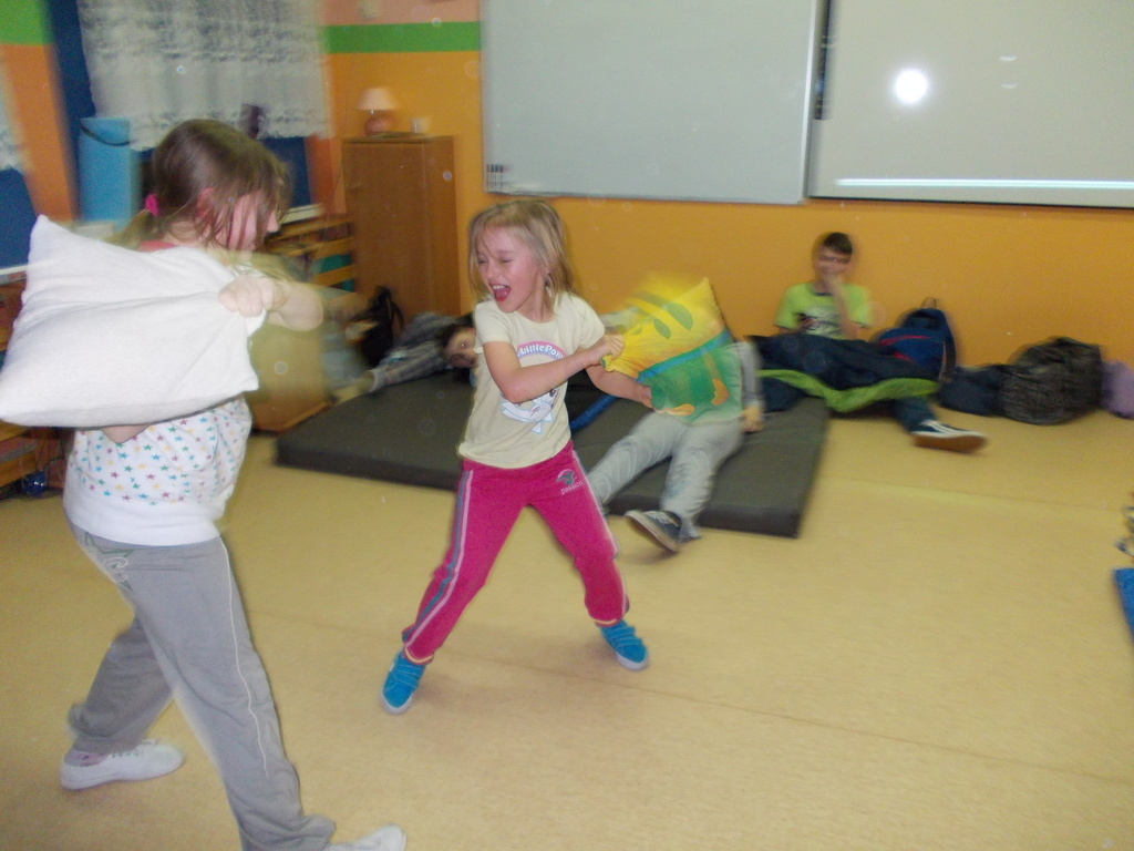 Druga część zbiórki nocnej  była również  pełna niespodzianek i takich  atrakcji jak: tańce, gry zręcznościowe, bitwa na poduszki, kino-relaks, wspólne robienie deserów. Niesamowitą niespodzianką okazała się uczta z zamówionej wcześniej pizzy.