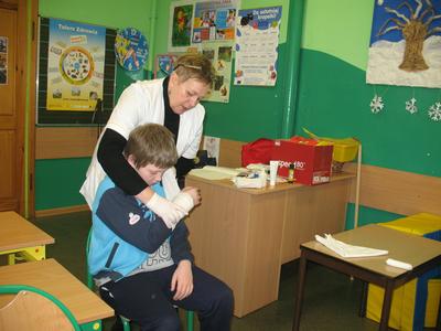Klaasa IV i V poznaje zasady pierwszej pomoce przedmedycznej( krwotok z nosa, oparzenia skaleczenia, usztywnienie złamanej kończyny, omdlenie,)