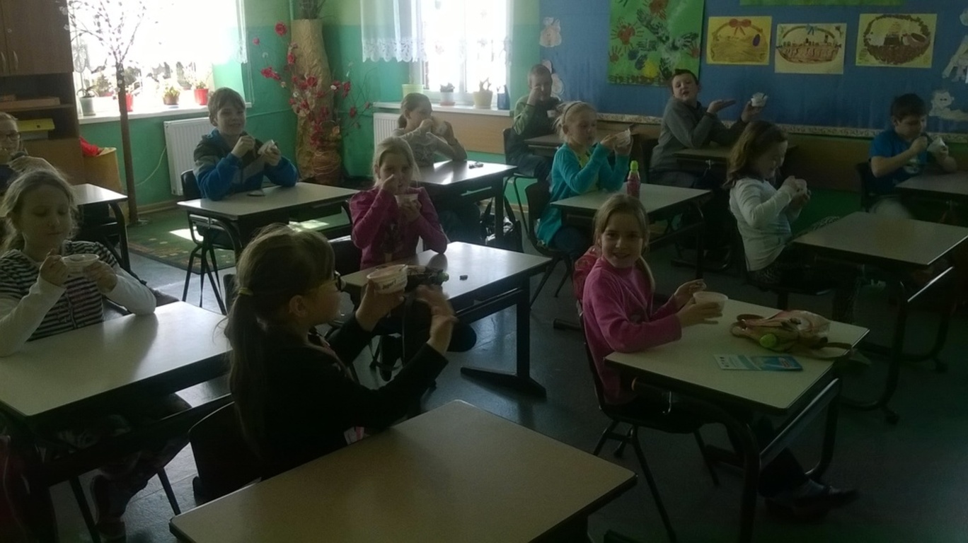 Dnia 14.04.2015r. dzieci z klas I-III wraz z nauczycielkami Moniką Tanona, Iwoną Heliasz oraz Moniką Kahl odwiedziły  Okręgową Spółdzielniaę  Mleczarska TOP-TOMYŚL