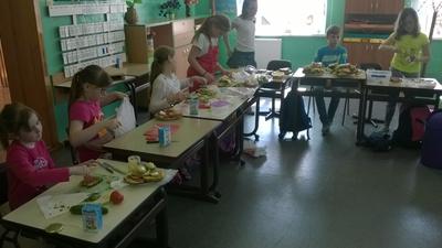 Trzecioklasiści rozmawiali z wychowawczynią panią Monika Tanona  o zdrowym odżywianiu i zdrowych przekąskach, które mogą przynosić do szkoły. Drugą częścią zajęć było zrobienie zdrowych i kolorowych kanapek.