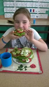 Na koniec uczniowie mogli oddać się rozkoszy smakowania swoich przepięknych, kolorowych i co najważniejsze, zdrowych kanapek. Zajęcia były bardzo smaczne…;)