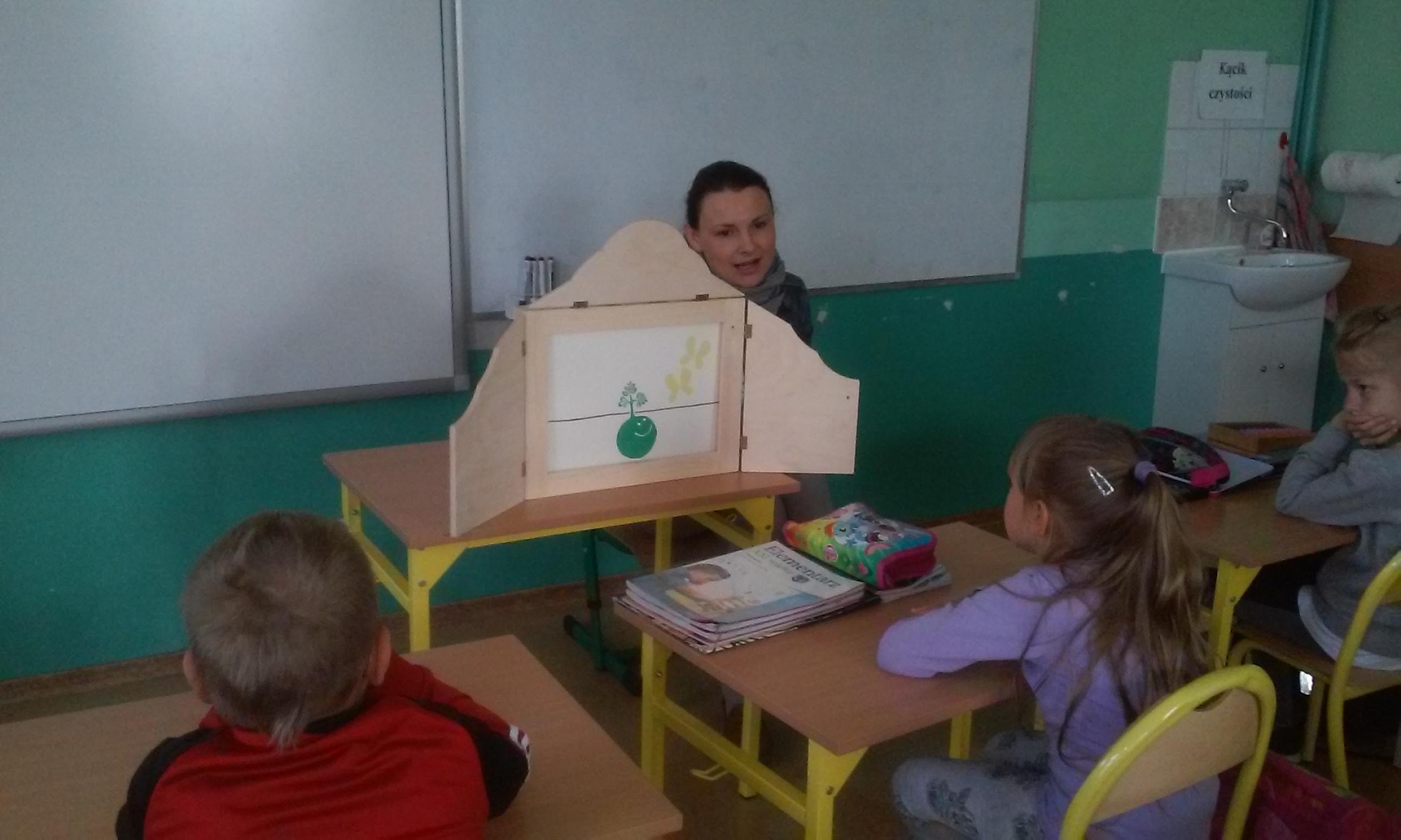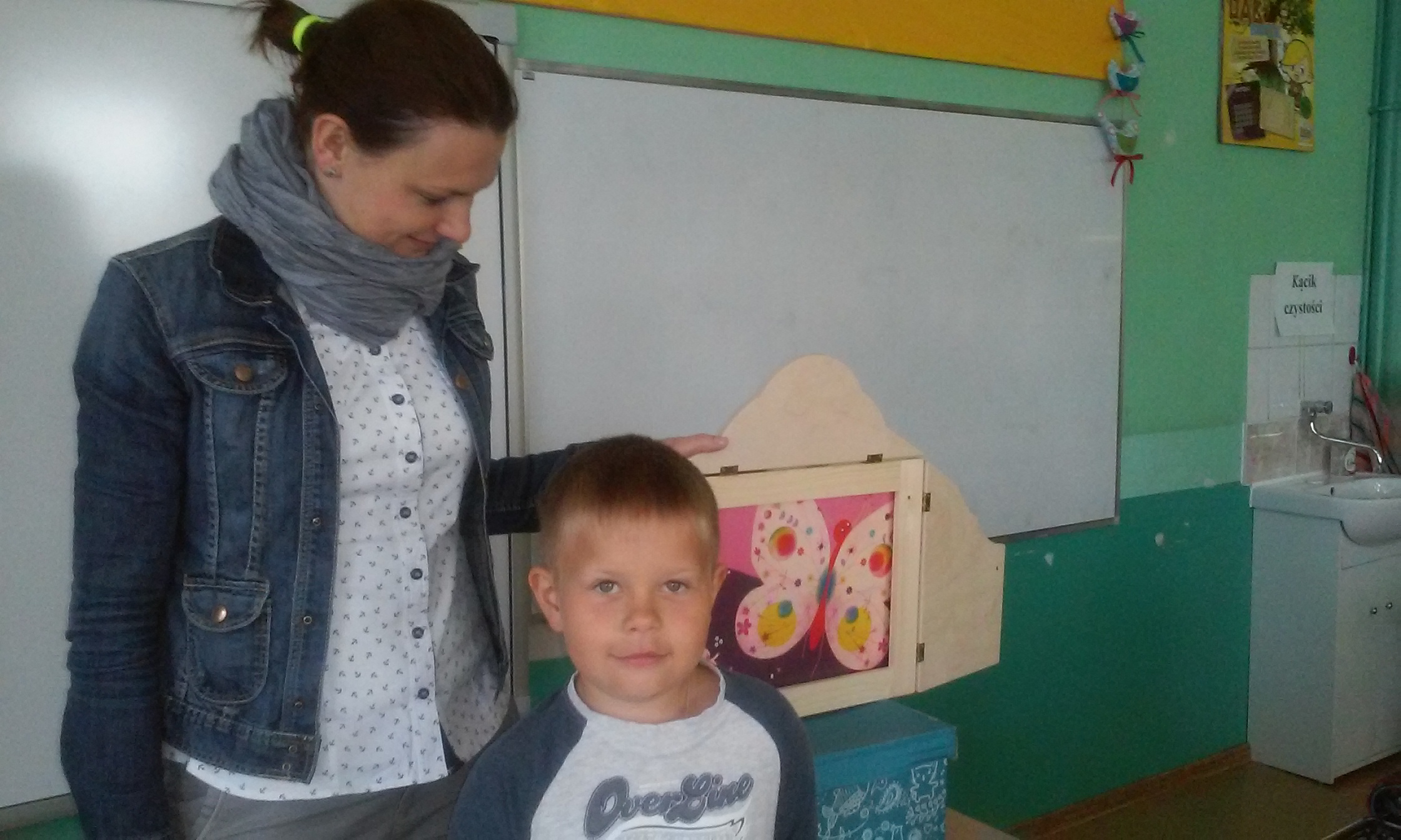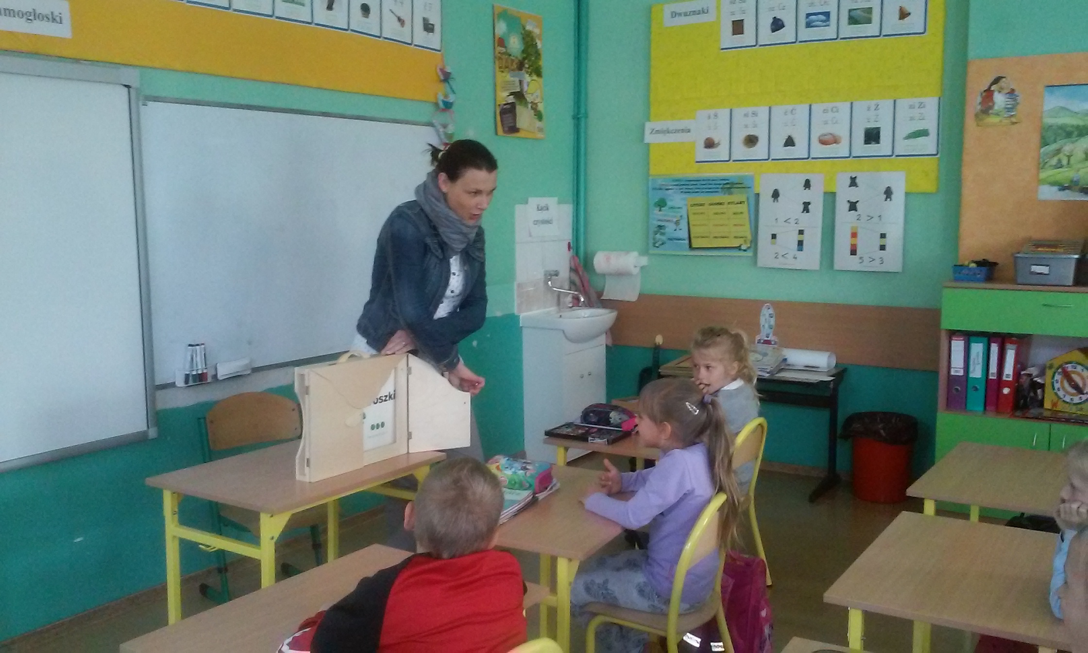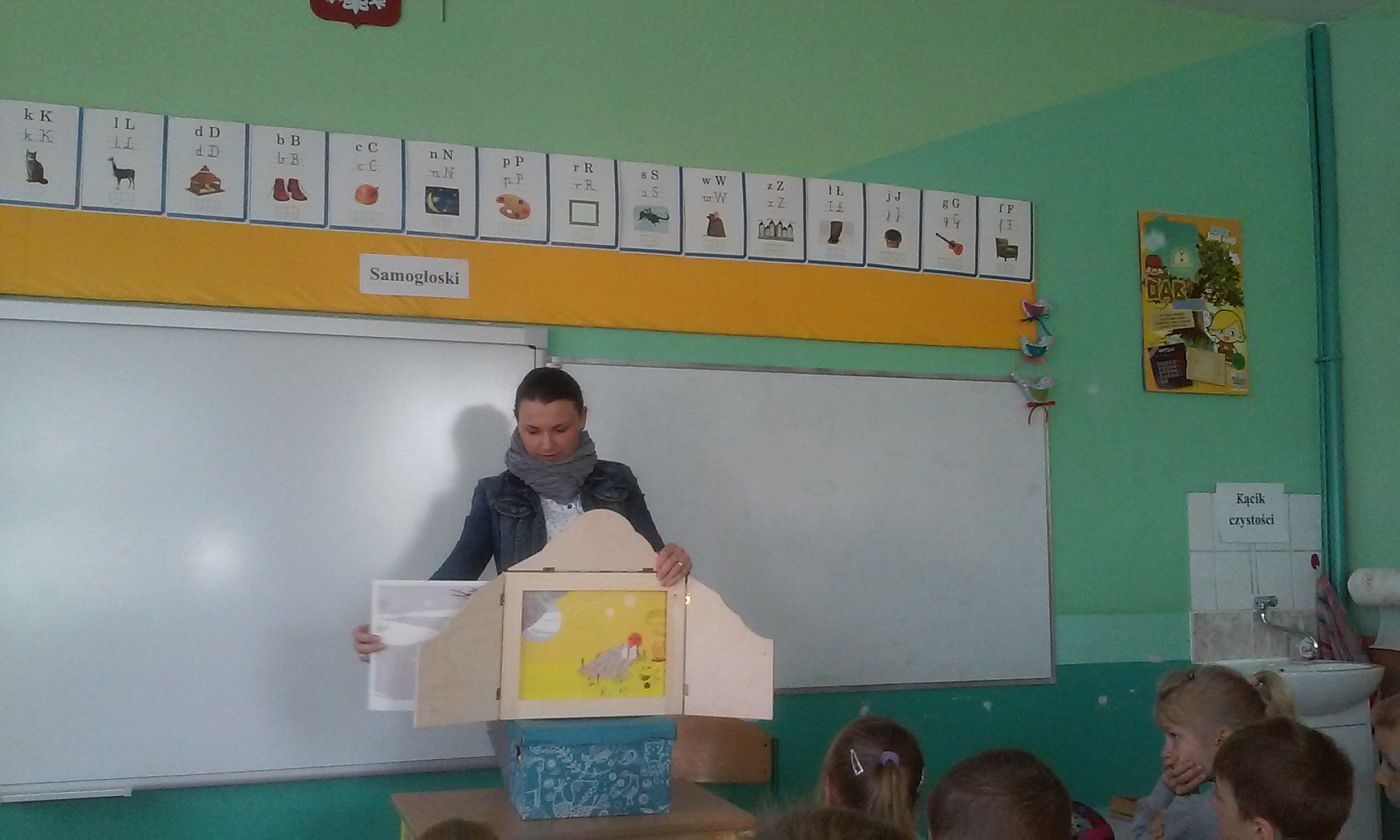 18 maja goscilismy w naszej klasie Panią Annę Czekała z Biblioteki Publicznej Miasta i Gminy Lwówek. Pani Ania przywiozła do nas tajemnicza skrzynkę. Jak się okazało był to obrazkowy teatr Kamishibai pochodzący z Japonii. Jest to technika opowiadania, czytania, wykorzystująca kartonowe plansze z obrazkami i tekstem oraz drewnianą lub kartonową skrzynkę, w której przedstawiane są kolejne fragmenty opowieści. Uczniowie poznali przygody pewnego motylka, historię pieska oraz legendę o Skarbniku. Magiczna skrzynka wzbudziła spore zainteresowanie wśród uczniów.