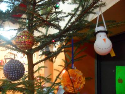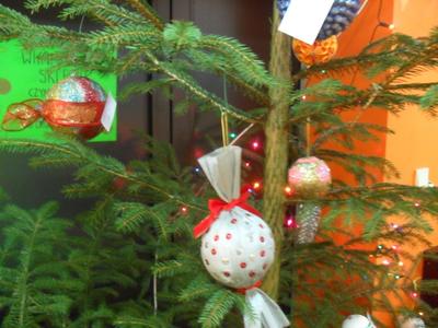 Konkurs na bombkę choinkową przerósł nasze oczekiwania. Wpłynęło prawie 50 bombek. Bombki były wykonane różnymi technikami i z różnych materiałów. Były bombki styropianowe ozdobione cekinami, bombki z żarówki, wełny, płatków kosmetycznych, gumek, wstążęk, papieru, makaronu. 16 bombek zostało wyróżnionych, a zwycięzcy zostali nagrodzeni. Pozostali uczestnicy konkursu również otrzymali drobne upominki. Większość bombek zdobi naszą szkolną choinkę. Jedną bombkę ofiarowaliśmy dla Nadleśnictwa w Bolewicach za choinkę do szkoły. 6 bombek ozdabia PKO we Lwówku, od którego otrzymaliśmy kilka nagród na konkurs.