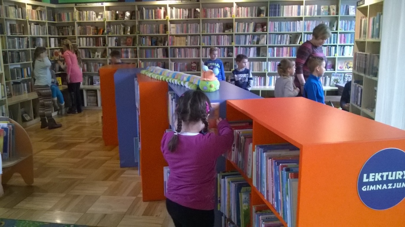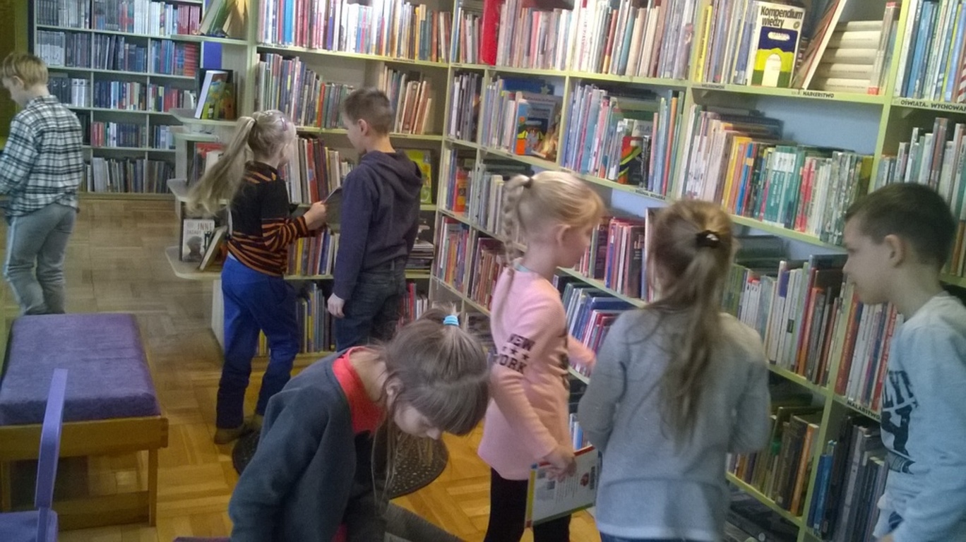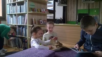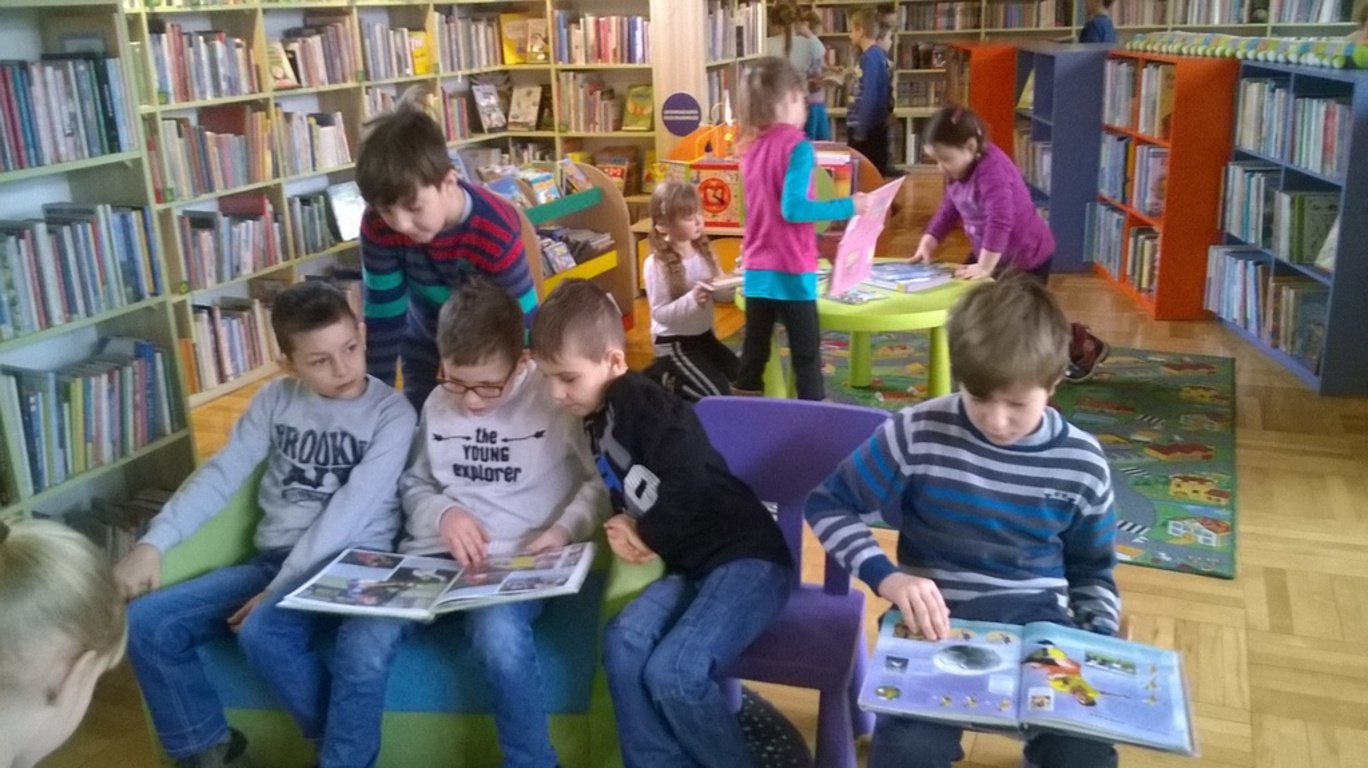 5 lutego dzieci klas I-III wraz z wychowawcami wybrały się na wycieczkę do biblioteki publicznej w Nowym Tomyślu. Pani bibliotekarka pokazała dzieciom, gdzie znajdują się przeznaczone specjalnie dla nich regały z książkami. Następnie zaprezentowała i dała do obejrzenia dzieciom najmniejsze książeczki z działu dziecięcego. Uczniom bardzo spodobały się kolorowe i bogato ilustrowane książeczki, które z chęcią oglądały. Jednak jeszcze większą radość sprawiło im oglądanie różnego rodzaju atlasów o: motocyklach, samochodach, roślinach, zwierzętach, bajkach oraz książeczek z trójwymiarowymi ilustracjami. Spotkanie odbywało się w miłej, pełnej uśmiechów i wrażeń atmosferze. Dla wielu uczniów, była to pierwsza wizyta w „domu książek”, ale na pewno nie ostatnia. Dzieci obiecały pani bibliotekarce , że niedługo znów ją odwiedzą.
