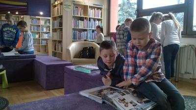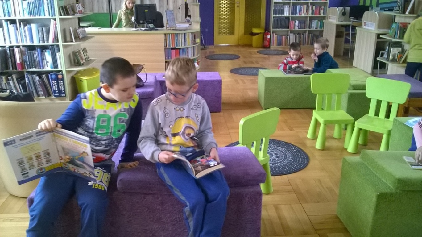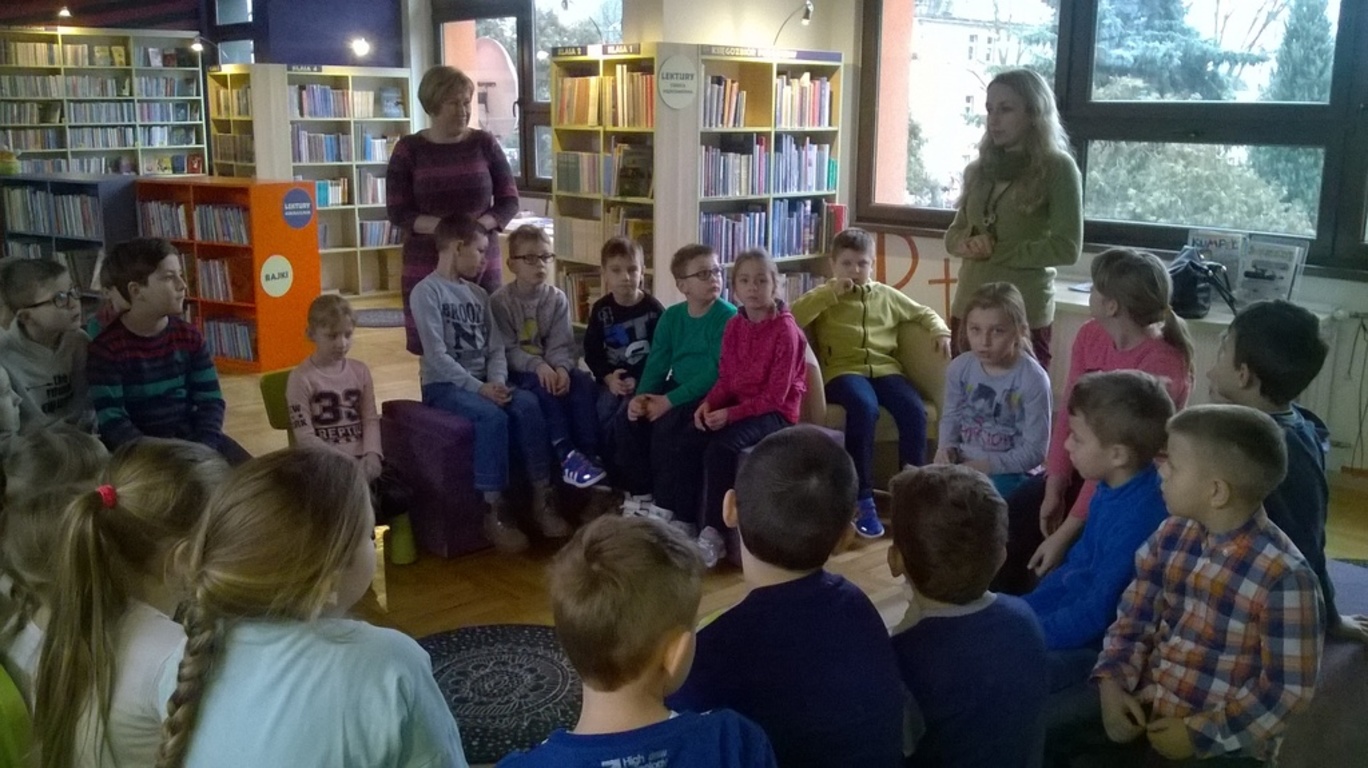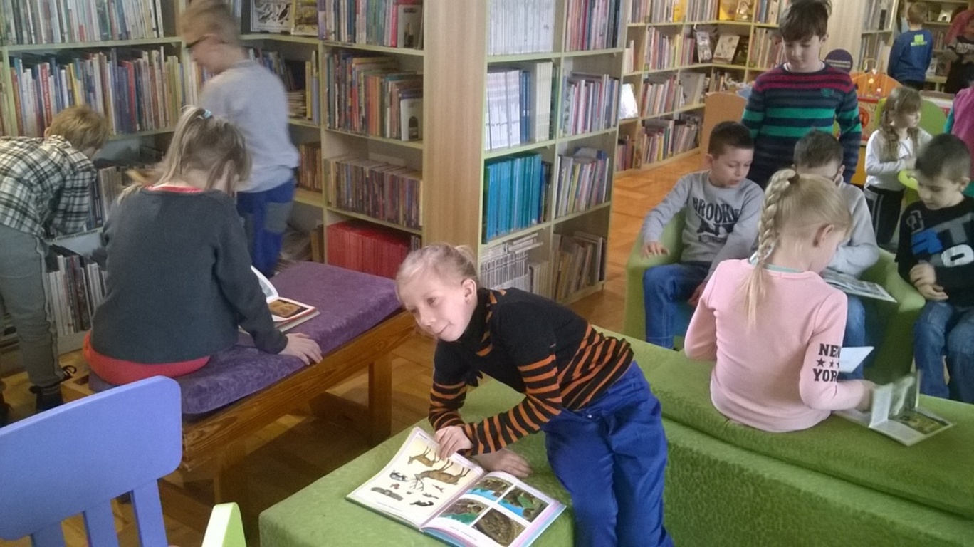 5 lutego dzieci klas I-III wraz z wychowawcami wybrały się na wycieczkę do biblioteki publicznej w Nowym Tomyślu. Pani bibliotekarka pokazała dzieciom, gdzie znajdują się przeznaczone specjalnie dla nich regały z książkami. Następnie zaprezentowała i dała do obejrzenia dzieciom najmniejsze książeczki z działu dziecięcego. Uczniom bardzo spodobały się kolorowe i bogato ilustrowane książeczki, które z chęcią oglądały. Jednak jeszcze większą radość sprawiło im oglądanie różnego rodzaju atlasów o: motocyklach, samochodach, roślinach, zwierzętach, bajkach oraz książeczek z trójwymiarowymi ilustracjami. Spotkanie odbywało się w miłej, pełnej uśmiechów i wrażeń atmosferze. Dla wielu uczniów, była to pierwsza wizyta w „domu książek”, ale na pewno nie ostatnia. Dzieci obiecały pani bibliotekarce , że niedługo znów ją odwiedzą.
