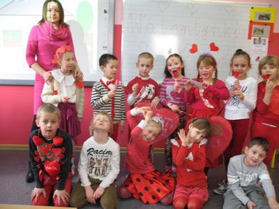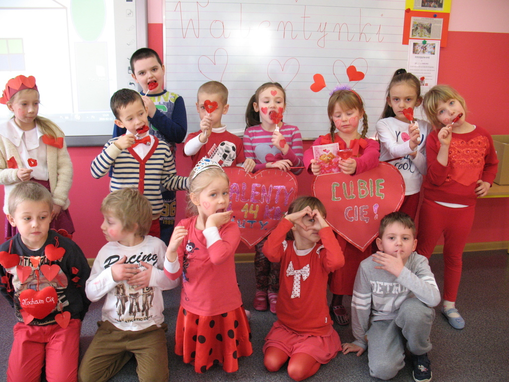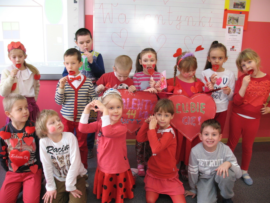 W piątek 12 lutego klasa I obchodziła Walentynki. W tym dniu specjalni listonosze przynieśli do klasy miłosną korespondencję. Każdy otrzymał tego dnia życzenia walentynkowe oraz słodki lizak w kształcie serduszka . W szkole był ogłoszony konkurs na ,,Najbardziej czerwony strój” - gdzie uczniowie klasy I mieli najoryginalniejsze stroje walentynkowe.