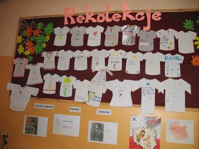 W dniach od 11.04 – 13.04.2015 r. w naszej szkole przeżywaliśmy rekolekcje szkolne. Tematem rekolekcji był Jubileusz 1050- lecia Chrztu Polski. Dzieci uczestniczyły w naukach rekolekcyjnych w kaplicy przygotowanych przez ks. Joachima Kusza z klasztoru Misjonarzy Oblatów Maryi Niepokalanej w Poznaniu. Zajęcia w szkole były prowadzone przez wychowawców. Prace, które dzieci wykonywały to: kl.I-III ,,Drzewo Życia’’ , kl.IV – VI ,,Moja szata z chrztu świętego’’. Uczniowie obejrzeli także filmy o tematyce religijnej: „ Jak to było z chrztem Polski’’, poznały miejsca związane z tym wydarzeniem - Ostrów Lednicki ,Gniezno. Dzięki rodzicom ,którzy pokryli koszty wyjazdu do Poznania w trzecim dniu rekolekcji ,mogliśmy razem z wychowawcami zwiedzić najstarszą katedrę w Polsce, być w miejscu ,gdzie powstawało państwo polskie. Chodziliśmy po tych samych miejscach ,gdzie spacerowali nasi pierwsi władcy, pierwsi duchowni i pierwsi chrześcijanie . Chrystianizacja Polski w II połowie X wieku rozpoczęła się niewątpliwie w Wielkopolsce. Naszym zadaniem jest kontynuować tradycje : wszystkie obrzędy i święta tak ,jak nas nauczyli rodzice, dbać by chrześcijańskie wartości były wciąż azymutem ,który wyznacza normy postępowania.