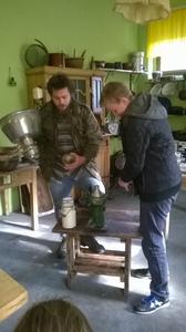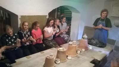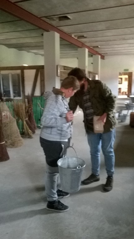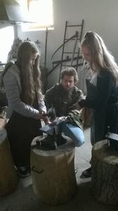 z garncarstwa i mogliśmy zrobić wazon lub pojemnik na kredki. Pan przewodnik był bardzo fajny,  opowiadał nam w bardzo zabawy sposób. Zobaczyliśmy wyposażenie starej kuchni, pracownię  fotografa, salę kinową. Poznaliśmy zawody takie jak: kowal, bednarz, pszczelarz, szewc. Mogliśmy się sprawdzić w tych zawodach np. heblując bednarską klepkę, czy kując żelazo u kowala…