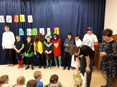 W dniu 8 marca chłopcy z Samorządu Uczniowskiego przygotowali dla swoich koleżanek i pań nauczycielek przedstawienie z okazji Dnia Kobiet.