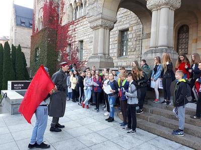 W ramach obchodów 100. rocznicy odzyskania niepodległości przez Polskę uczniowie z kl.VII-VIII z SP w Chmielinku oraz Posadowie uczestniczyli w nietypowej lekcji historii, jaka miała miejsce na ulicach Poznania. Znakomicie ucharakteryzowany powstaniec wielkopolski, podczas spaceru, w bardzo obrazowy sposób przypomniał młodzieży wydarzenia z przełomu 1918 oraz 1819 roku.