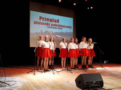 7 listopada 2018r. 9 dziewcząt z VI i VII klasy, reprezentowało szkołę podczas XIII Przeglądu pieśni patriotycznych, jaki miał miejsce w NOKu. Uczennice zaśpiewały: "Czerwone maki na Monte Cassino" oraz "Żeby Polska była Polską".
