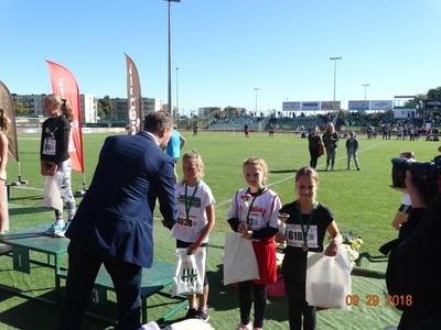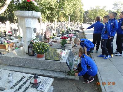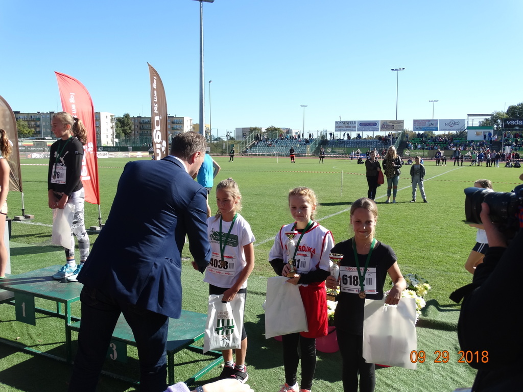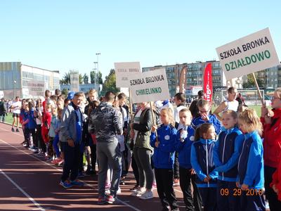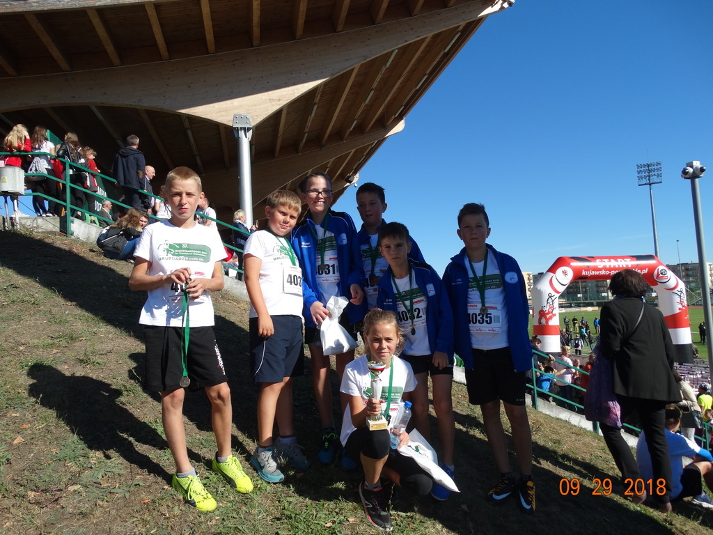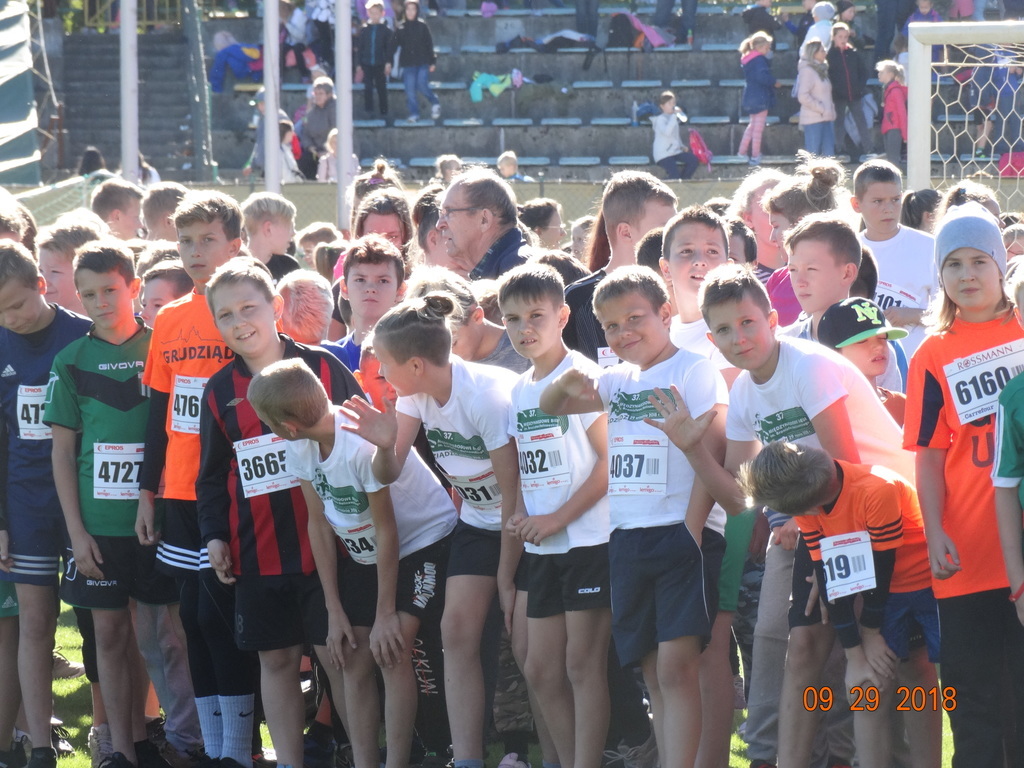 W sobotni poranek już dawały się zauważyć u uczestników biegów emocje związane ze startem, który miał odbyć się za niecałe 3 godzinki. Dlatego jeszcze przed zawodami udaliśmy się na cmentarz, aby złożyć bukiet kwiatów na grobie naszego patrona szkoły. Później już zostało tylko odliczać czas do startów naszych reprezentantów w dwóch biegach. W pierwszym biegu wystąpiła nasza jedyna reprezentantka, która zajęła 4 miejsce  na 478 uczestniczek z rocznika 2007 i 2008. Nicola była pierwsza ze swojego rocznika 2008. W kolejnym biegu wystartowało 6 chłopaków. Najszybszy z naszych był Maciej Kasztelan, który uplasował się na 14 miejscu, a biegli jeszcze Dawid Śnieguła, Błażej Heliasz, Marcel Piechota, Mikołaj i Milan Włodarczykowie. Wszyscy chłopcy ukończyli bieg w pierwszej setce uczestników, a w biegu ogólnie wzięło udział 445 osób.