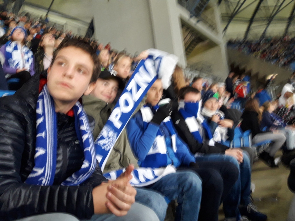 30 września o godz. 18.00 w Poznaniu kibicowaliśmy poznaniakom w spotkaniu ligowym ekstraklasy. Na mecz pojechaliśmy za sprawą akcji „kibicuj z klasą”. Uczniowie wejście na stadion mieli za darmo i pokrywali tylko część opłaty za autokar z racji dofinansowania z parafii Lwówek. Wyjazd na takie wydarzenie sportowe przyczynił się do integracji społeczności szkolnej z kilku placówek oraz pozwolił na odpoczynek w inny sposób niż siedzenie przed komputerem. JJJJ
