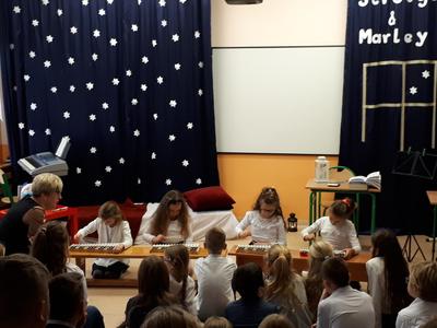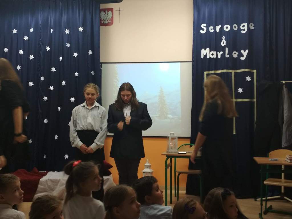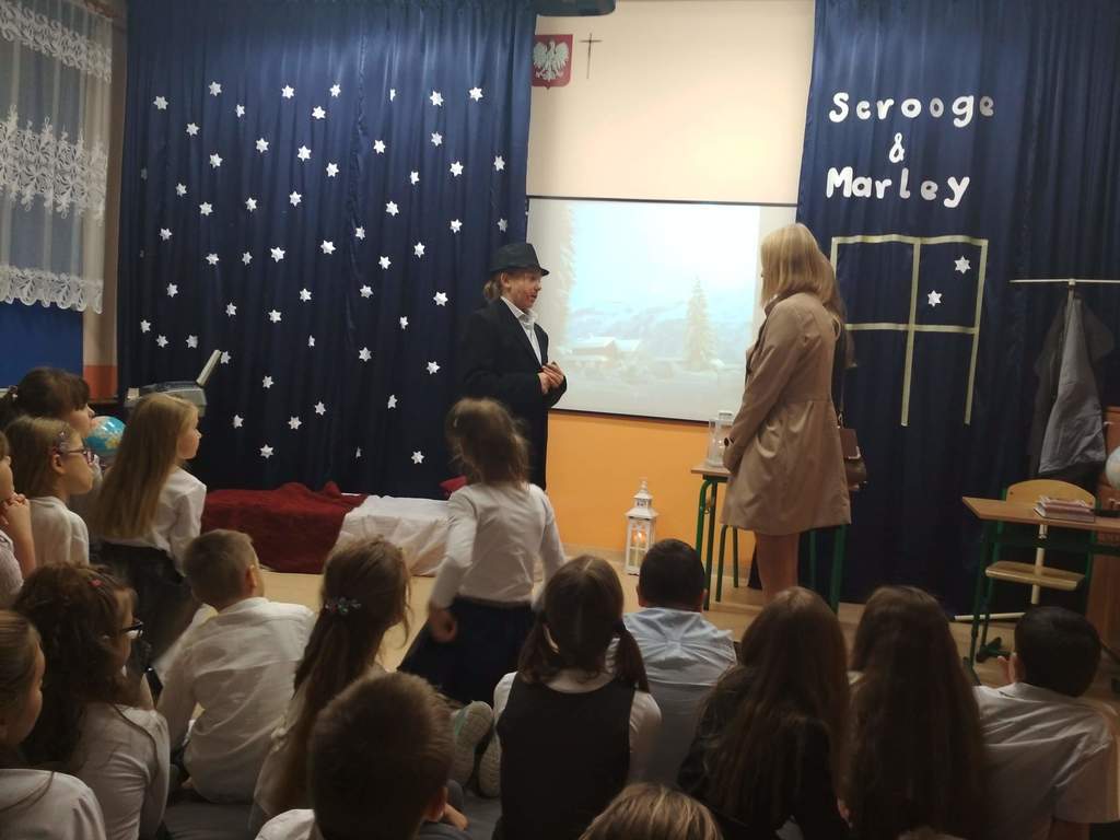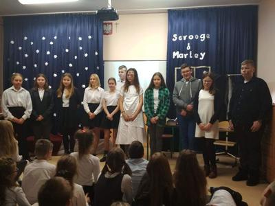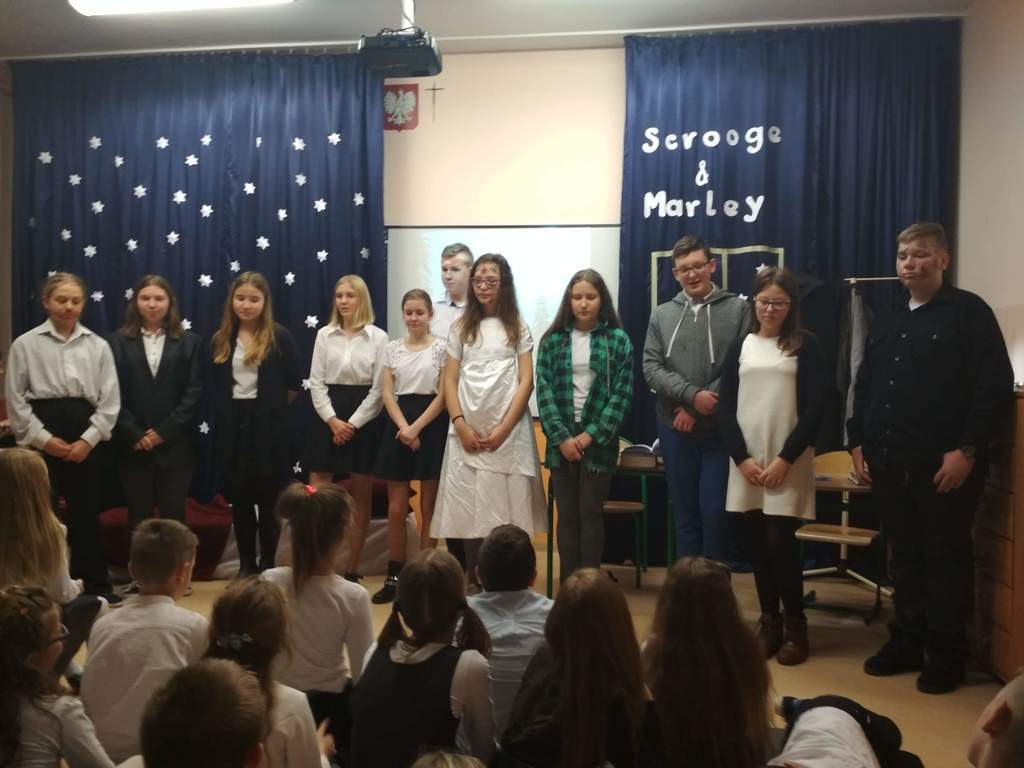 W minionym roku zamiast jasełek, polinistki ( K.Kudełka, D. Prętka) przygotowały spektakl pt. "Opowieść wigilijna". Swoimi autorskimi umiejętnościami popisali się uczniowie kl. VII, ktorzy także razem z opiekunkami przygotowali scenografię,  kostiumy oraz muzykę.