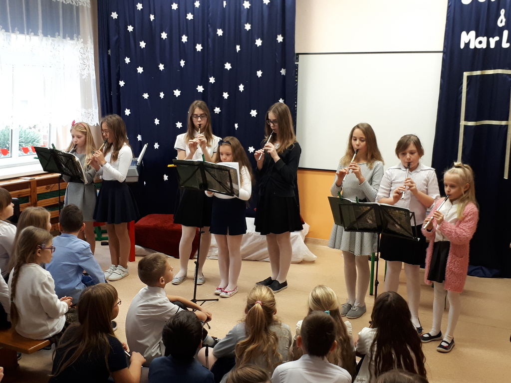 Po spektaklu odbył się koncert kolęd, podczas którego chętni uczniowie zaprezentowali swoje wokalno-instrumentalne zdolności.
