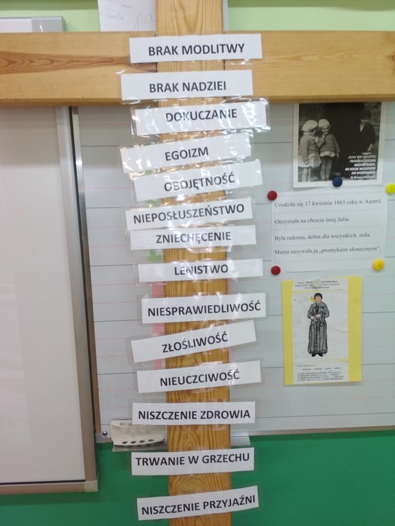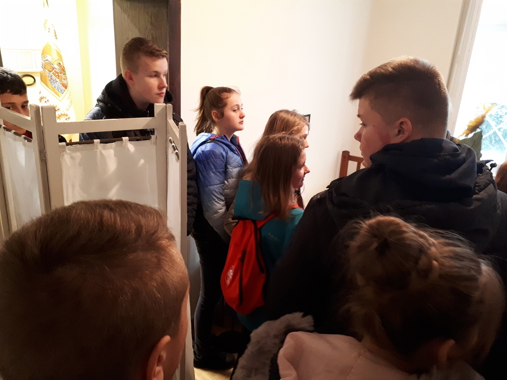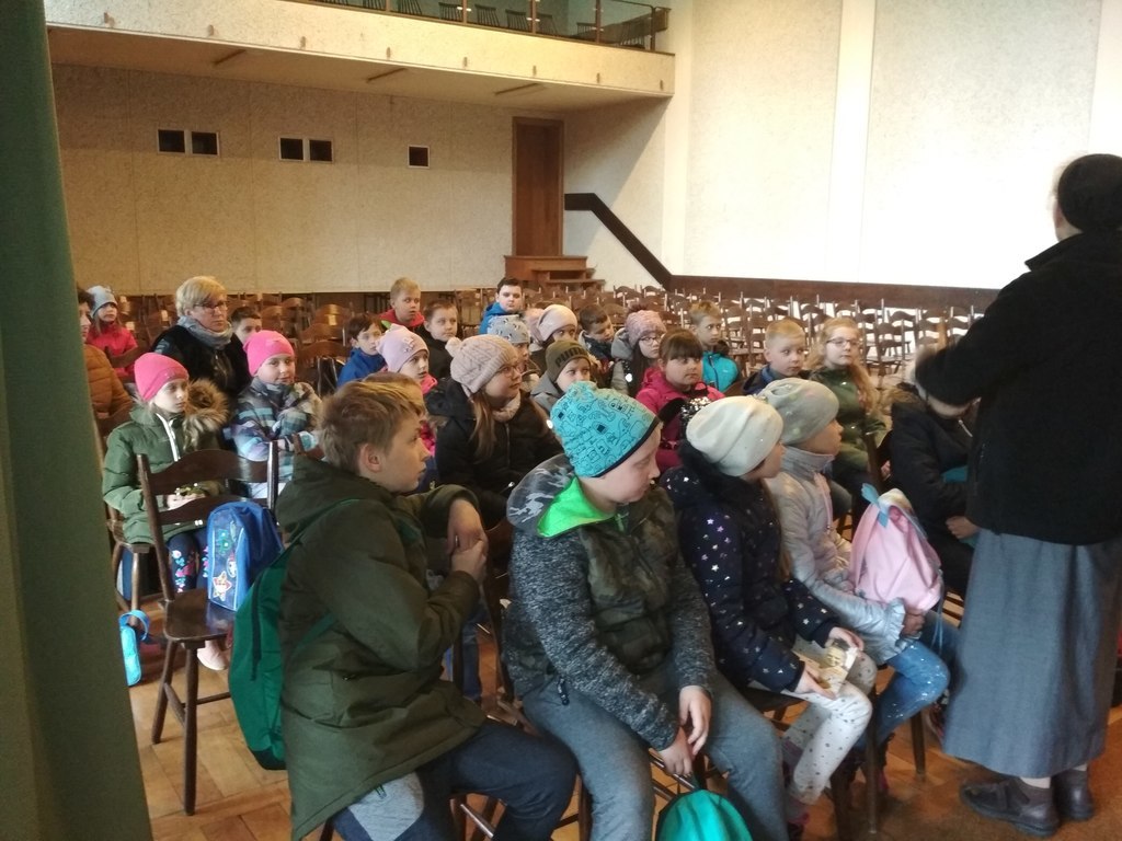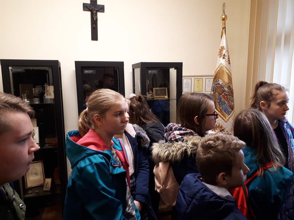 Uczestniczyły również w Drodze krzyżowej pt. ,, Spotykam cierpiącego Jezusa w mojej szkole”. Przesłanie było jasne – nie wszyscy mają tyle odwagi by pomóc temu, którego nikt nie lubi, boją się przyznać, że chcą być dobrzy, wstydzą się zawołać Pana Boga znakiem krzyża, gdy inni patrzą. Dzień drugi rekolekcji był dniem wyjazdowym do Pniew. Tam zwiedziliśmy Sanktuarium św. Urszuli Ledóchowskiej, gdzie spoczywają jej relikwie. Obejrzeliśmy wystawę dotyczącą życia św. Urszuli oraz utworzonego przez nią Zgromadzenia Sióstr Urszulanek Serca Jezusa Konającego i pamiątki z wielu zakątków świata. W trzecim dniu rekolekcji szkolnych uczestniczyliśmy w najważniejszym spotkaniu z naszym Panem we mszy świętej. Na koniec przedstawiciele społeczności uczniowskiej podziękowali ojcu za nauki rekolekcyjne oraz wręczyli w podzięce upominek. Niewątpliwie rekolekcje były czasem potrzebnym do wejrzenia w głąb siebie, do zastanowienia się nad swoim zachowaniem i postępowaniem.