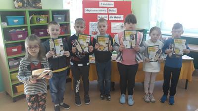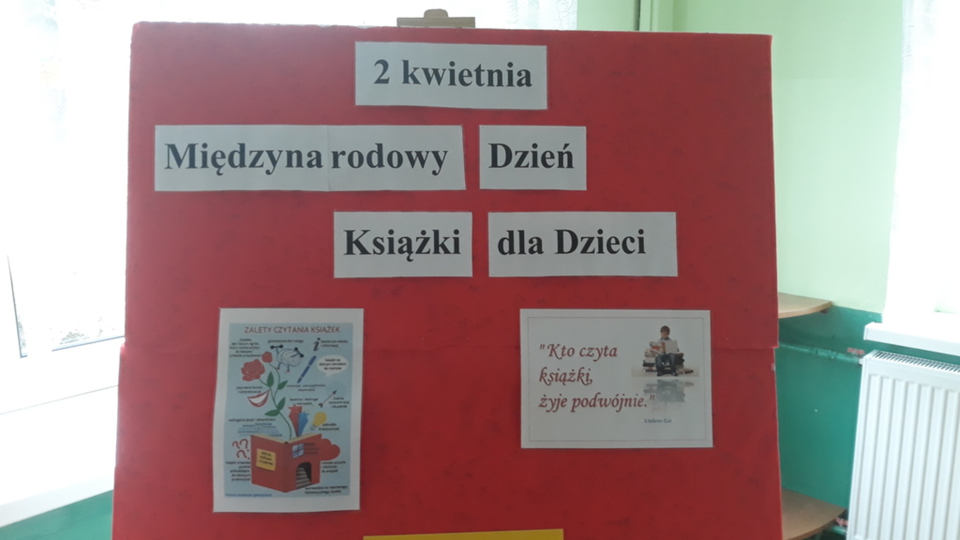 Dnia 2 kwietnia obchodziliśmy Międzynarodowy Dzień Książki dla Dzieci. W związku z tym w szkole zorganizowana została wystawa książek nauczycieli naszej szkoły, które czytali w dzieciństwie. Ponadto uczniowie klasy I stali się pełnoprawnymi czytelnikami biblioteki szkolnej. Zanim jednak nastąpił moment pasowania pierwszaki obejrzeli krótką inscenizację przygotowaną przez koleżanki z klasy II oraz zdały krótki egzamin. Na zakończenie pierwszaki zostały pasowane przez p. dyrektor szkoły oraz otrzymały pamiątkowe dyplomy, legitymacje czytelnika oraz zakładki.