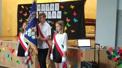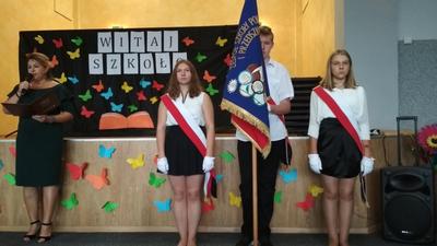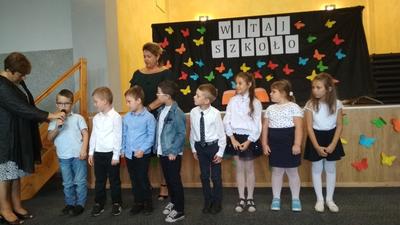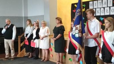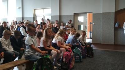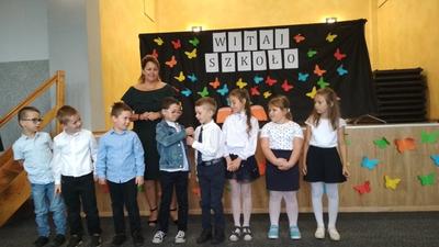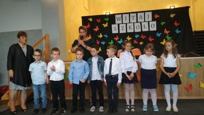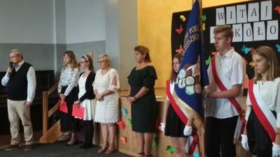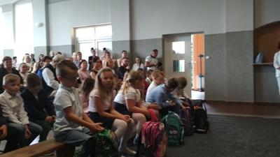 2 września nasza szkoła znowu zaczęła tętnić życiem. Po wakacyjnej przerwie rozpoczęliśmy  nowy rok szkolny, w który wkroczyliśmy pełni obaw i nadziei.  Uroczysta inauguracja roku szkolnego 2019/2020 tradycyjnie rozpoczęła się mszą świętą. Następnie pani Dyrektor, zaproszeni goście, nauczyciele oraz uczniowie i ich rodzice udali się na spotkanie na salę wiejską.uroczystość rozpoczęcia roku szkolnego rozpoczęła się od wprowadzenia sztandaru szkoły i odśpiewanie hymnu narodowego.Następniue pani Dyrektor przywitała serdecznie wszystkich zgromadzonych, a szczególnie ciepło dzieci z oddziałów przedszkolnych oraz pierwszoklasistów. . Kilka słów pani Dyrektor również skierowała do rodziców naszych uczniów. Podkreśliła, jak ważną są częścią społeczności szkolnej. Zaznaczyła, iż kluczowe będzie ich zaangażowanie, wsparcie dla nauczycieli oraz wychowawców, ponieważ pomoże ono w realizacji celów oraz zadań edukacyjno-wychowawczych. W swoim przemówieniu pani Dyrektor życzyła również nauczycielom satysfakcji z realizacji zadań edukacyjnych kształtujących umysły i serca młodych ludzi, wielu sukcesów zawodowych, owocnej współpracy oraz dobrej atmosfery w przyjaznej i bezpiecznej szkole. W tym roku szkolnym nasze grono pedagogiczne powiększyło się o 3 nowych nauczycieli. Uroczystość zakończona była krótkim programem artystycznym upamiętniającym 80 rocznicę wybuchu II wojy światowej oraz na wesoło przybycie pierwszaków do szkoły.