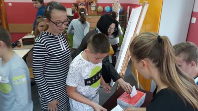 Dnia 27.09.2019 r. w naszej szkole odbyły się wybory do Samorządu Uczniowskiego. Kandydaci zobowiązani byli do zebrania odpowiedniej ilości podpisów. Zgłosiło się aż 15 kandydatów z klas V-VIII. Po głosowaniu uczniów z klas III-VIII oraz nauczycieli Komisja wyborcza (Milena Skoczek oraz Piotr Minge) podliczyła glosy.