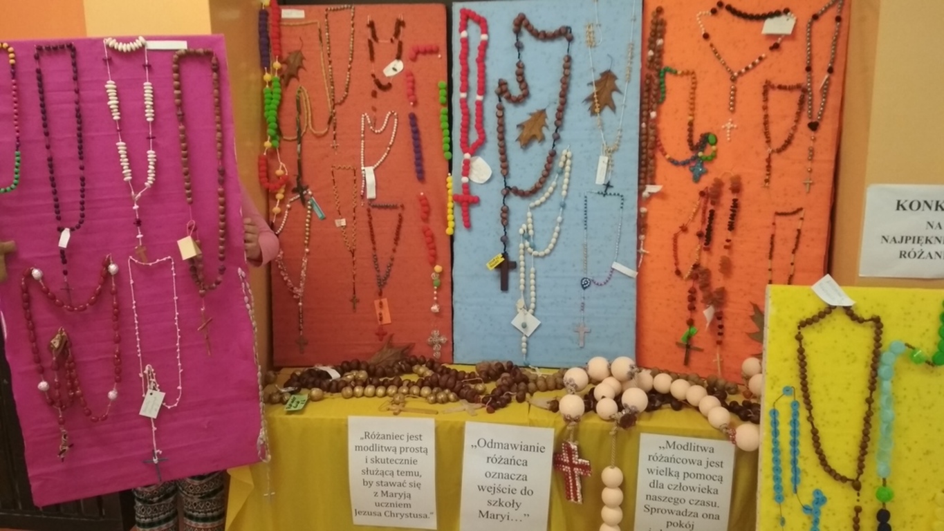 Październik jest miesiącem modlitw  z Różańcem. Dlatego we wrześniu został ogłoszony w naszej szkole konkurs na wykonanie "Najpiękniejszego Różańca".  Adresatami konkursu byli uczniowie  Szkoły Podstawowej w  Chmielinku .Prace konkursowe były oceniane w dwóch kategoriach : I – IV , V – VIII. Uczestnicy konkursu do wykonania różańca wykorzystali najróżniejsze materiały . Były różańce z orzechów, kasztanów , makaronu, kawy, koralików, nakrętek , plasteliny, gąbeczek  itp. Pomysłowość i oryginalność prac okazała się wielka, komisja konkursowa miała nie lada problem z wyłonieniem laureatów.  Dnia 27.10.2019r. konkurs został rozstrzygnięty. Jury w składzie: ks. biskup Zdzisław Fortuniak,  ks. proboszcz Grzegorz  Gałkowski,     ks. Jan Majchrzak , ks. Jerzy Gąszczak  wybrało najpiękniejsze różańce.