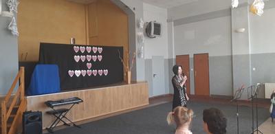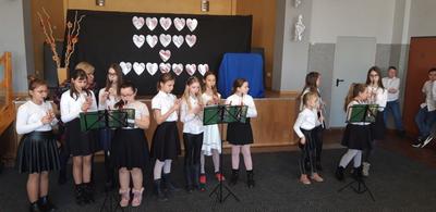 na wstępie pani dyrektor Renata Marciniak przywitała wszystkich gości ciepłymi słowami. w udekorowanej sali wiejskiej Chmielinko młodzież szkolna przedstawiała program artystyczny. W większości były to wiązanki z życzeniami, piosenki i pełne humoru żarciki, wszystko związane tematycznie z tym świętem. Nad przygotowaniem programu czuwali nauczyciele wychowawcy poszczególnych klas.