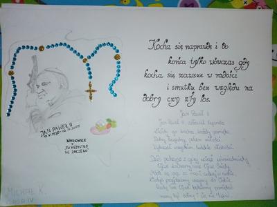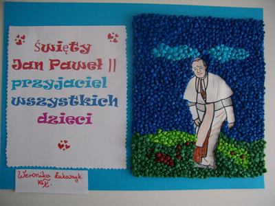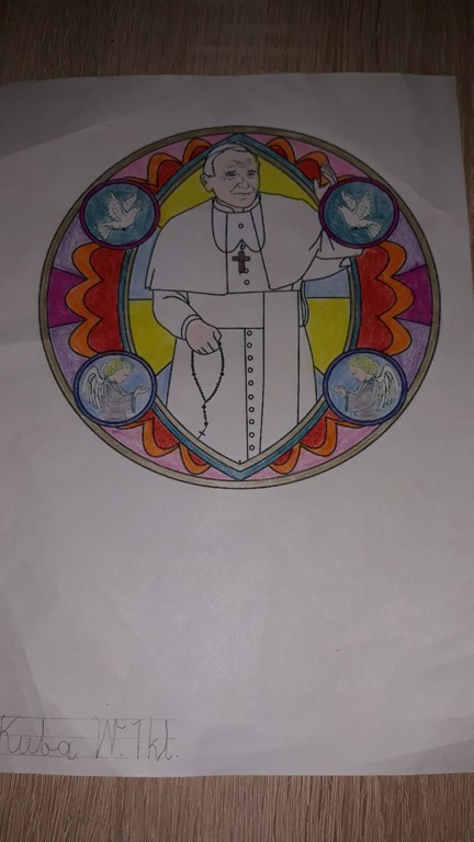 Wszystkie prace które uczniowie przesłali można zobaczyć tu na stronie internetowej naszej szkoły. Natomiast oryginalne prace w wersji papierowej będą wystawione w rocznicę wyboru św. Jana Pawła II na Stolicę Piotrową na szkolnym korytarzu. Wtedy zostaną ocenione przez Jury. Dziękuję wszystkim dzieciom, które włożyły sporo pracy w wykonanie tych prac i rodzicom za wsparcie swoich pociech. Organizator konkursu : I. Heliasz