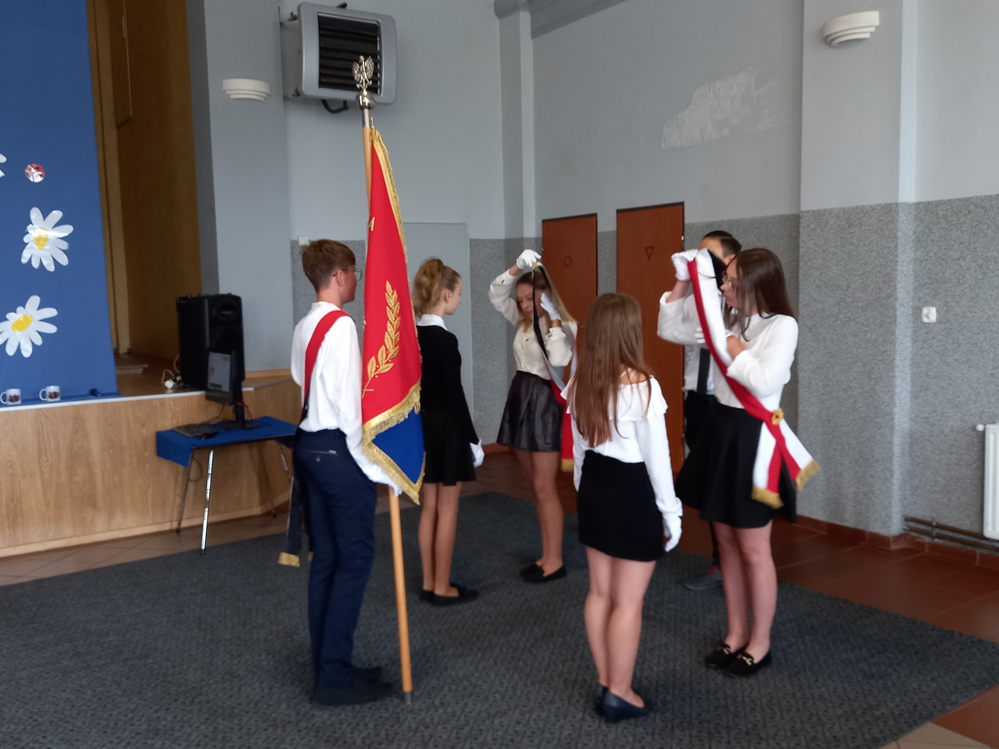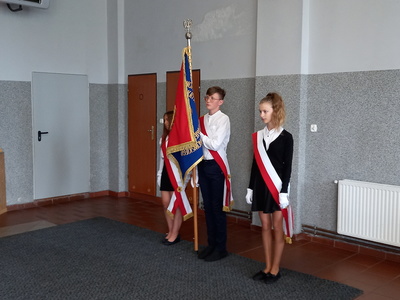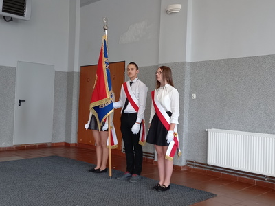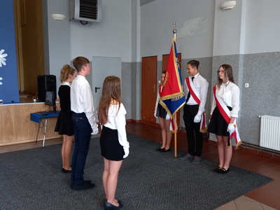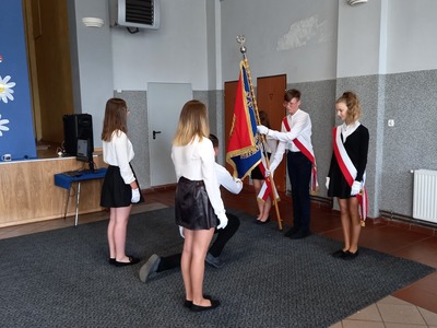 Z godnie z tradycję tego dnia klasa VIII przekazała sztandar szkoły swoim młodszym kolegom.