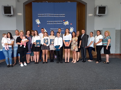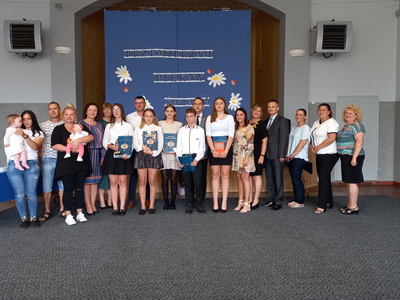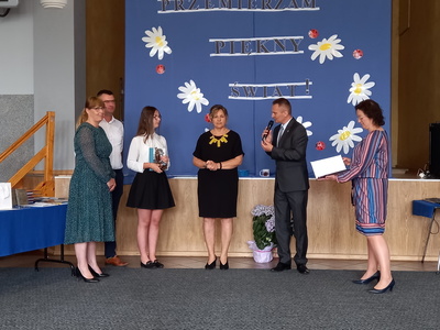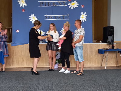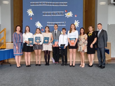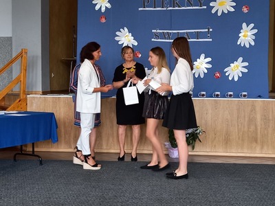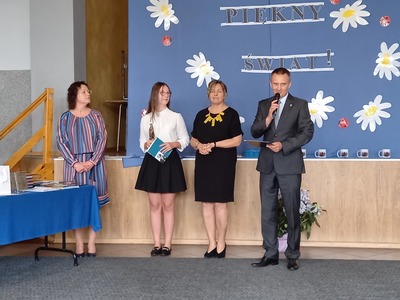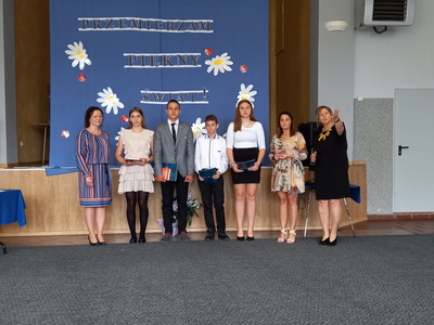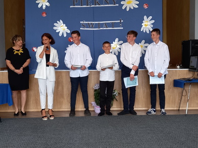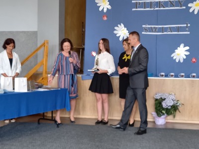 Absolwenci szkoły w czasie uroczystego apelu odebrali świadectwa, nagrody książkowe i rzeczowe za wzorowe zachowanie, bardzo dobre wyniki w nauce oraz za osiągnięcia sportowe. Martyna Paszke z rąk pana sekretarza Macieja Piechowiaka, otrzymała nagrodę "Złotego Absolwenta". Gratulujemy.