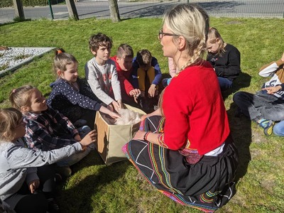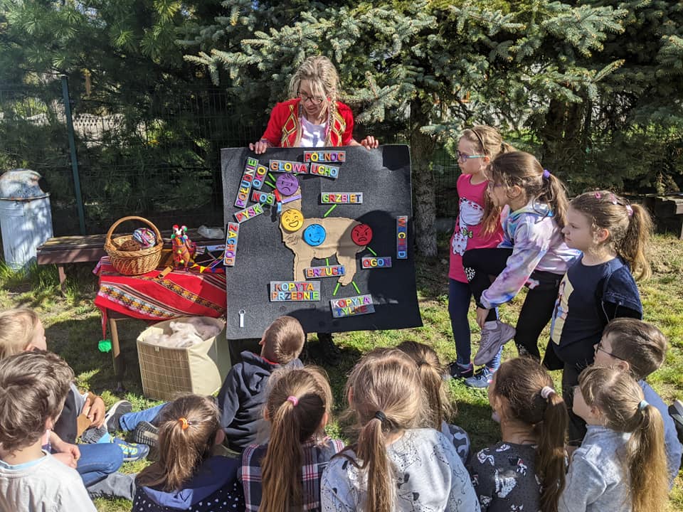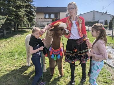Pani Kasia opowiedziała dzieciom o cechach alpak, pochodzeniu, zwyczajach, wyglądzie i bardzo łagodnym usposobieniu.