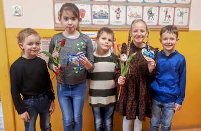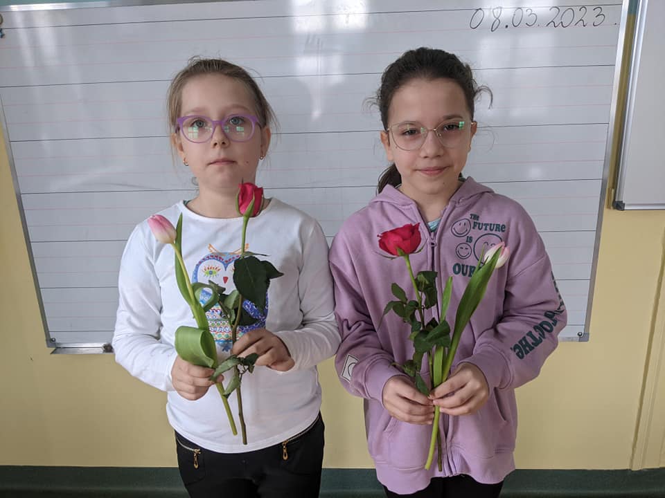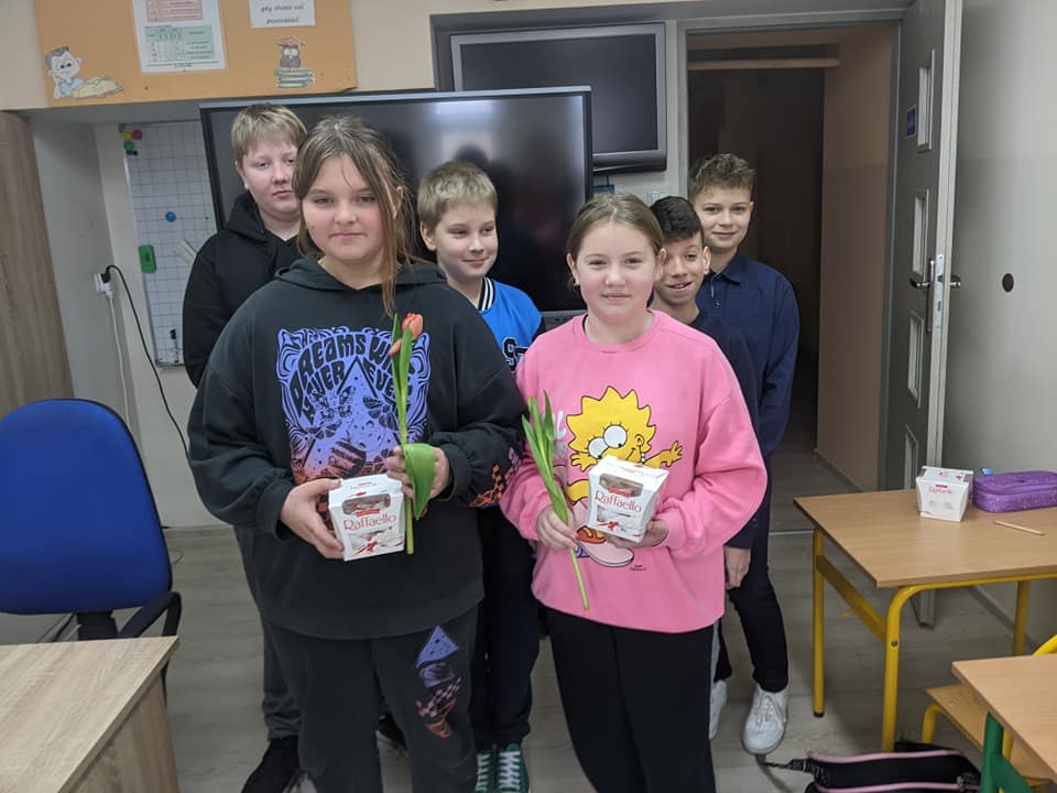 Już od samego rana w naszej szkole było widać ,że nadszedł 8 marca. Chłopcy wręczali swoim koleżankom i Paniom kwiaty.