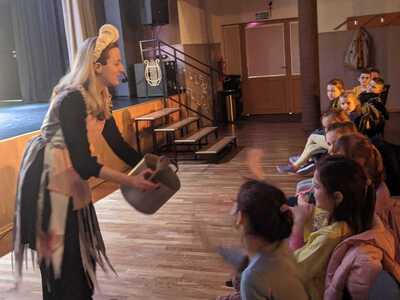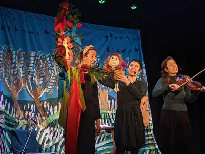 Klasy I-III uczestniczyły w kolejnym spotkaniu ze sztuką . Spektakl ,,Entlik -Pentlik wiosny pamiętnik " .Wiosenna opowieść na styku teatru lalek i muzyki tradycyjnej.