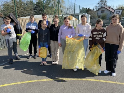 W piątek, 21.04.2023r., nasza szkoła wzięła udział w V edycji ogólnopolskiej akcji #SprzątamyDlaPolski, objętej honorowym patronatem Prezesa Rady Ministrów. Główną ideą wydarzenia jest uczenie młodego pokolenia odpowiedzialności za środowisko poprzez wyrabianie odpowiednich nawyków. W ramach tego przedsięwzięcia uczniowie klas , wraz z opiekunami, zaopatrzeni w worki i rękawice, posprzątali tereny zielone, chodniki i ulice w pobliżu szkoły.