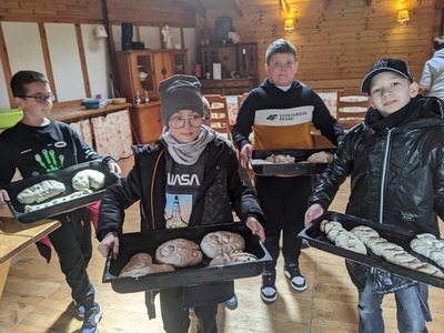Uczniowie zwiedzali piękne miejsca, sami wyrabiali ciasto na chleby, które zaberali do swoich domów, w czasie wyjazdu bawili się na wspaniałym placu zabaw i poznali  przesympatycznych ludzi.