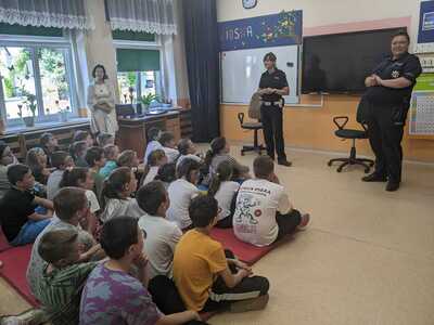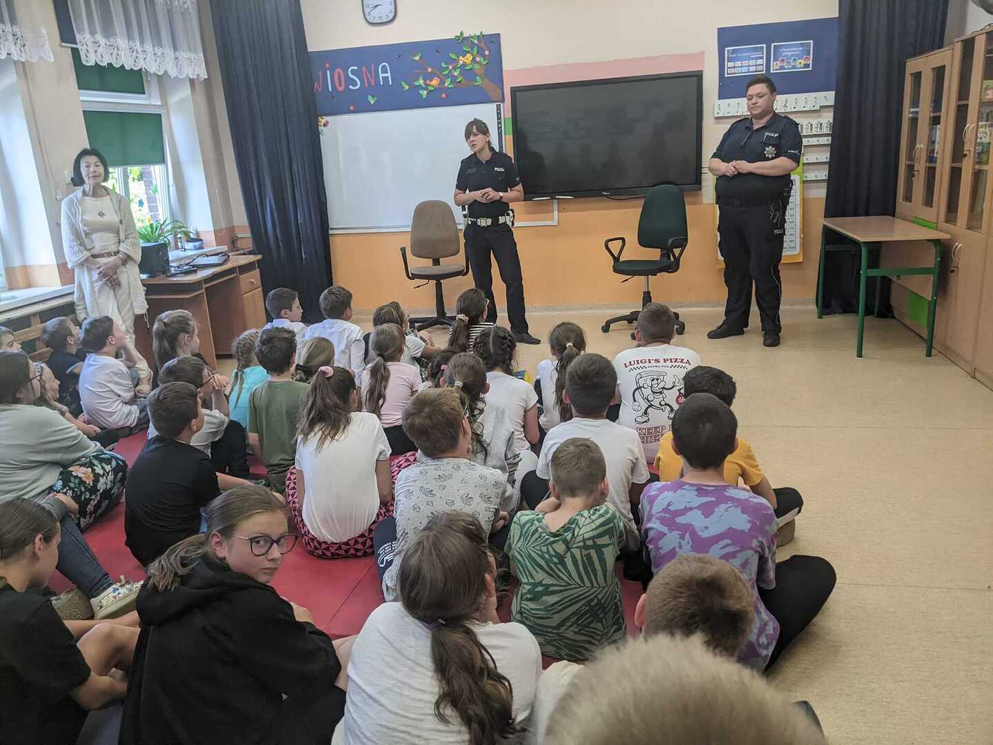 Mundurowi przeprowadzili rozmowę na temat bezpiecznego zachowania się w czasie wakacji.