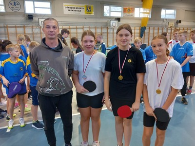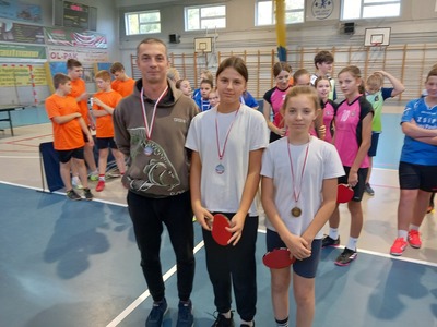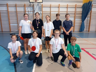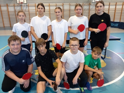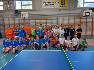 W poniedziełek 23 października w lwóweckiej hali sportowej odbyły się mistrzostwa gminy w drużynowym tenisie stołowym. Zawody rozegrane zostały w czterech kategoriach. Dzieci szkolne do klasy 6 w kategorii dziewcząt i chłopców oraz młodzież szkolna tzn. 7 i 8 klasy w kategorii dziewcząt i chłopców. Wszystkie teamy rozegrały swoje zawody systemem "każdy z każdym". Walki na stołach i emocji było co nie miara, ale jak zwykle ktoś musiał wygrać, a ktoś zająć dalsze miejsca. Naszą szkołę reprezentowały 4 drużyny. Drużyna dziewcząt w starszej kategorii zwyciężyła swoje wszystkie spotkania i zajęła pierwsze miejsce. W ekipie zagrały: Maja Szymlet, Antonina Rałowicz i Amelia Nowak. Dziewczęta młodsze w składzie Julia Pigla oraz Maja Spychała zdobyły srebrny medal oraz takie samo miejsce na podium zdobyli chłopcy młodsi w składzie Adam Kłaczyński i Dawid Bernat. Chłopaki ze starszej kategorii walczyli o każdy punkt, ale tym razem się nie udało zdobyć medalu. Gratulacje dla wszystkich i życzymy dobrego występu na zawodach powiatowych :-)