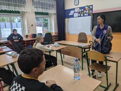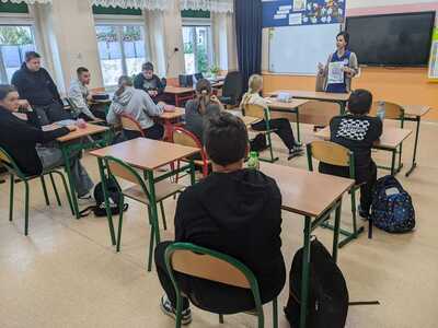 Przeprowadzono z dziećmi pogadankę na temat zawartości plecaków, odbył się pokaz prawidłowego pakowania i zakładania plecaków, uświadomiono uczniów, jakie skutki niesie za sobą obciążenie kręgosłupa zbyt ciężkim i nieprawidłowo noszonym tornistrem.