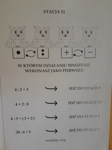 Uczniowie klas IV-VIII brali udział w stacjach zadaniwych oraz rozwiazywaniu zadań matematycznych. Natomiast uczniowie młodszych klas wykonywali zadania dostosowane do ich umiejętności. Dodatkowo na lekcjacjach informatyki brali udział w Egzamin online z tabliczki mnożenia.
