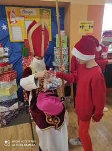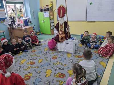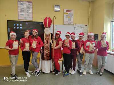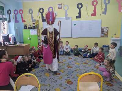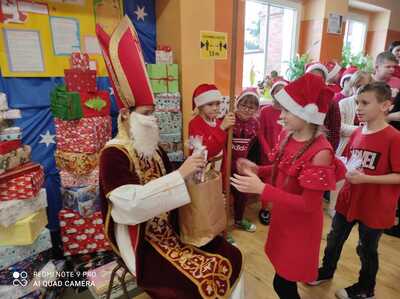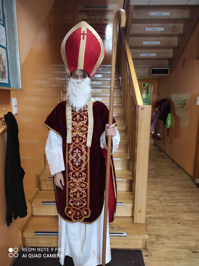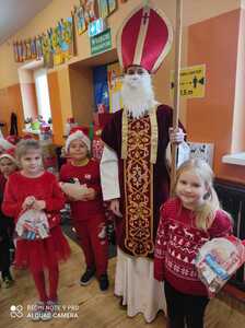 Do naszej szkoły i przedszkola zawitał specjalny gość -Biskup Mikołaj. Jak na prawdziwego Biskupa przystało przybył ubrany w ornat oraz mitrę. Jego broda oraz pastorał trzymany w ręku dodawały mu dostojności.