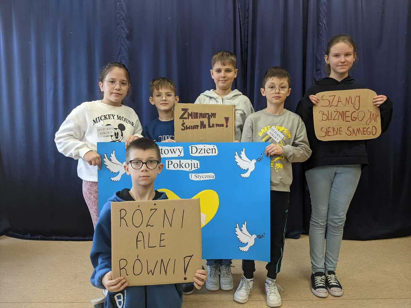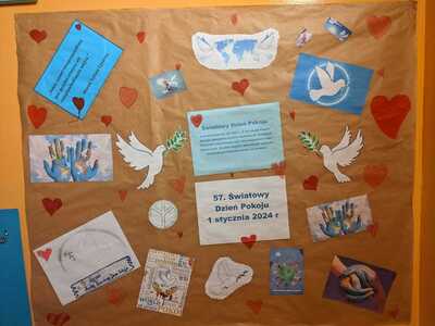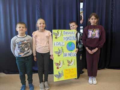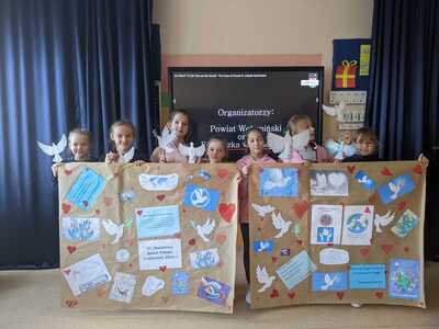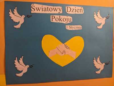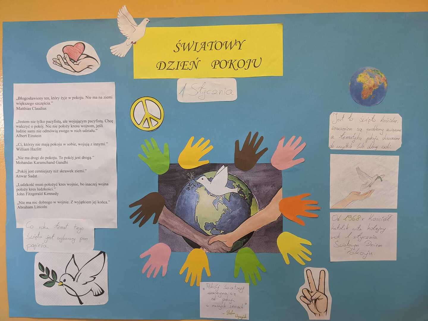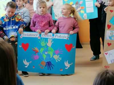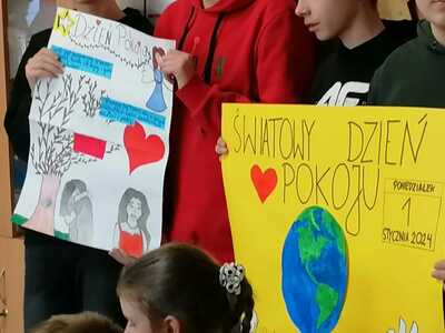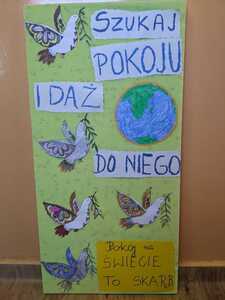 Uczniowie w klasach tworzyli plakaty oraz dyskutowali nad potrzebą szerzenia idei pokoju na świecie. Na apelu dzieci wysłuchały fragment orędzia papieża Franciszka oraz zaśpiewaliśmy piosenkę ,, Bo świat to my" ( We are the Word) .