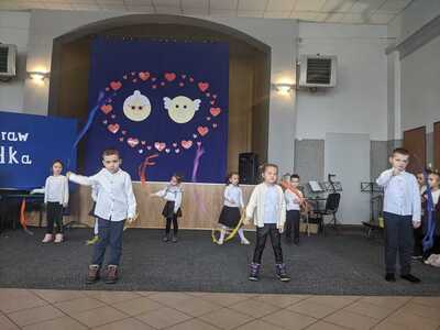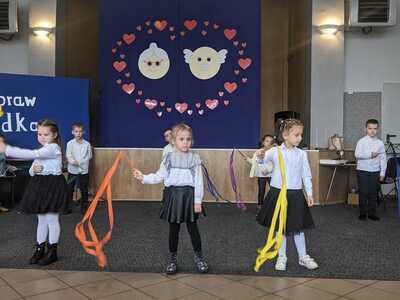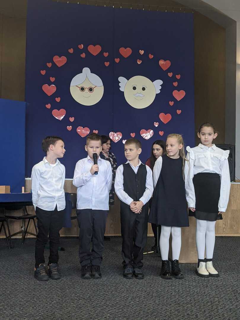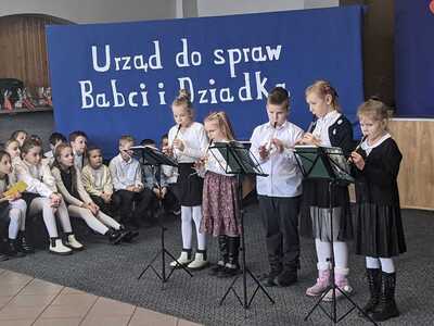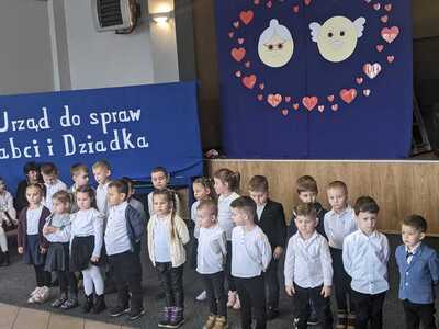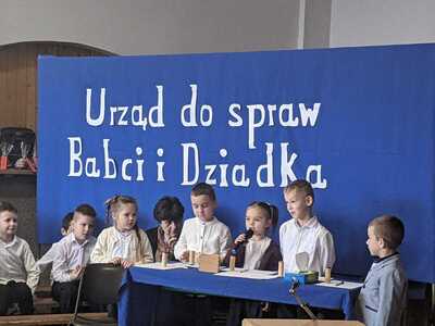 Na wstępie Pani Dyrektor Renata Marciniak przywitała wszystkich gości. W pięknie udekorowanej sali dzieci z przedszkola i klas I-III przedstawiły bardzo żywiołowy program artystyczny, na który złożyły się bardzo wzruszające przedstawienie teatralne , piosenki, a także pokazy taneczne. W trakcie uroczystości babcie i dziadkowie mogli podziwiać swoje pociechy, nagradzając najmłodszych gromkimi brawami. Mali artyści z przejęciem odtwarzali swoje role, a czcigodni goście ze wzruszeniem odbierali czułe słowa. Z ust dzieci wybrzmiało gromkie ,,Sto lat", a następnie obdarowano dziadków upominkami.