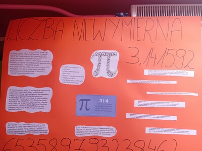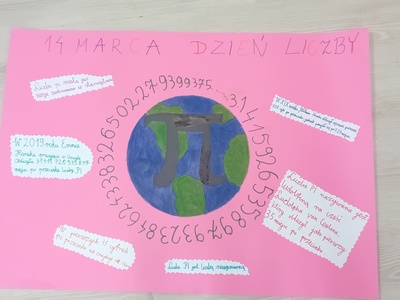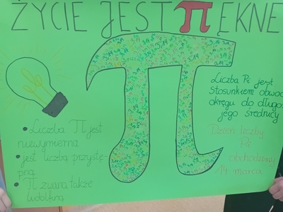4. W czwartek to dzień liczby Pi – w tym dniu zostały przedstawione plakaty o Liczbie Pi wykonane przez poszczegó.lne klasy.