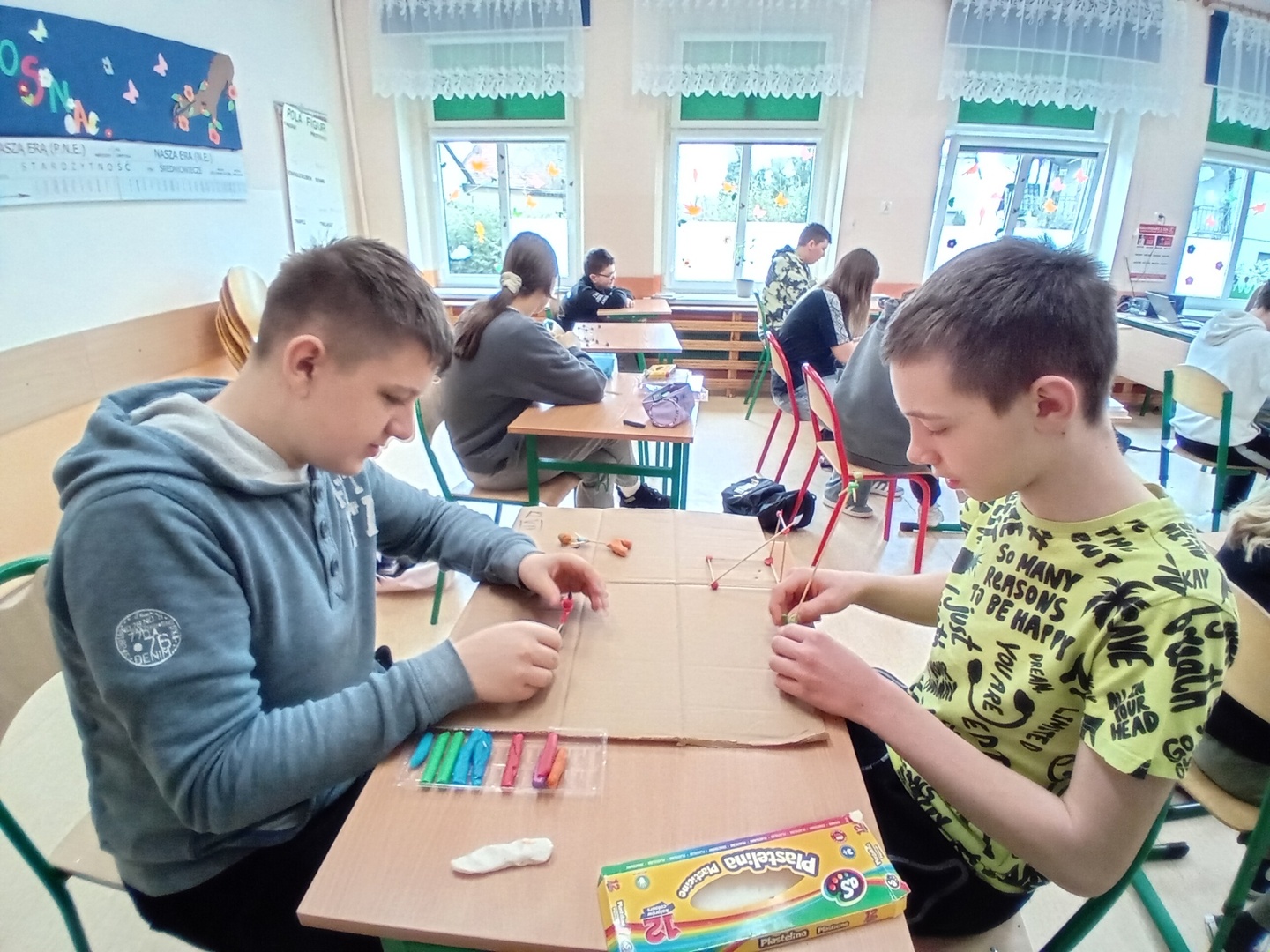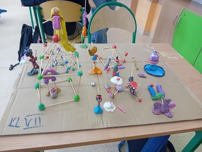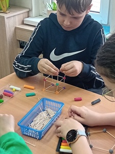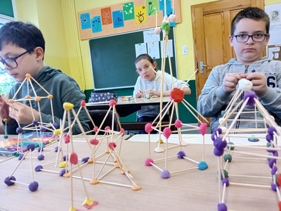 3. W środę odbył się konkurs „Mali architekci”- klasy na lekcji matematyki budowały z wykałaczek i plasteliny budowle.