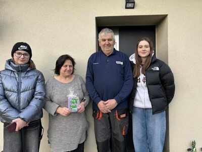 Wręczając świąteczne kartki życzyli Seniorom Wesołych Świąt. Po raz kolejny uczniowie spotkali się z ciepłym przyjęciem, za które dziękują.