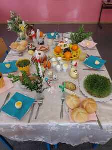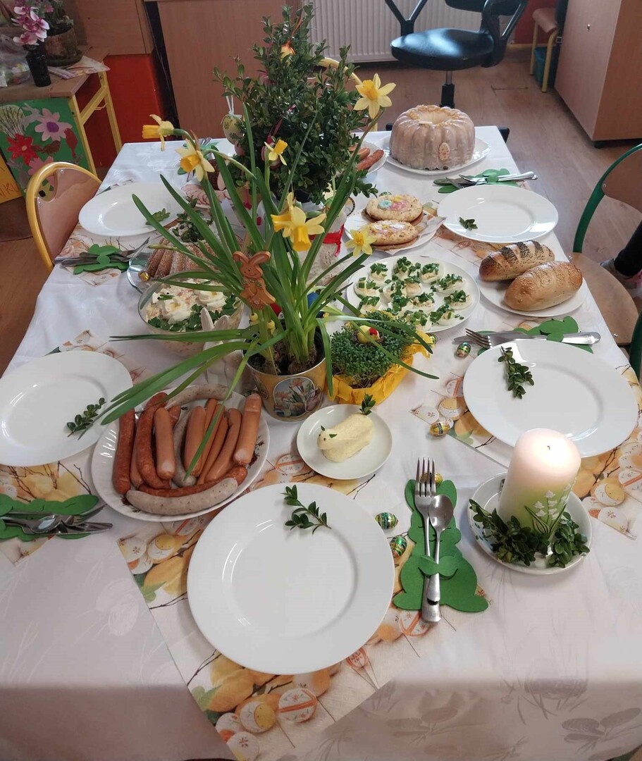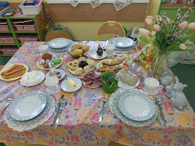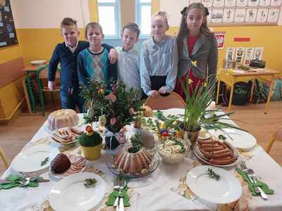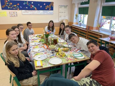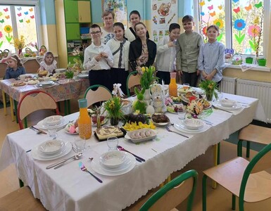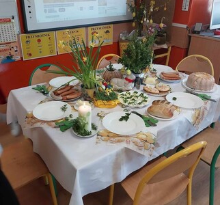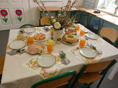 Z okazji zbliżających się Świąt Wielkanocnych wszystkie klasy z wychowawcami przygotowywali w klasach stół wielkanocny .
